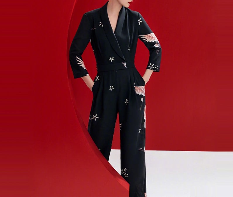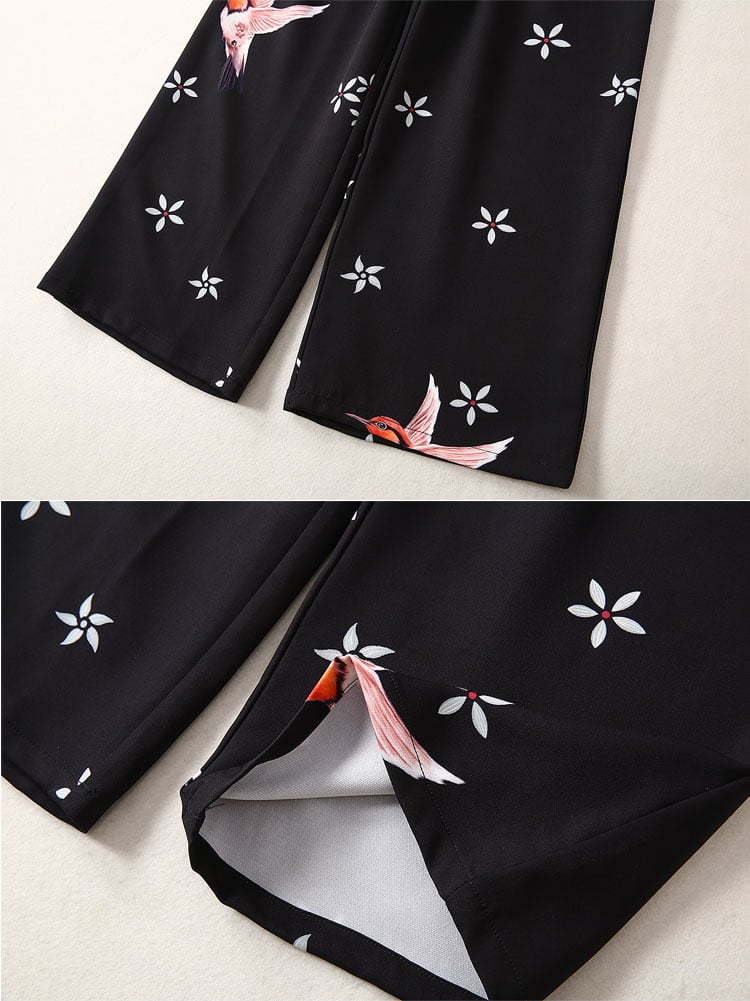 BBL DESIGN WRAP TEA WIDE LEG JUMPSUIT IN ALL OVER PRINT