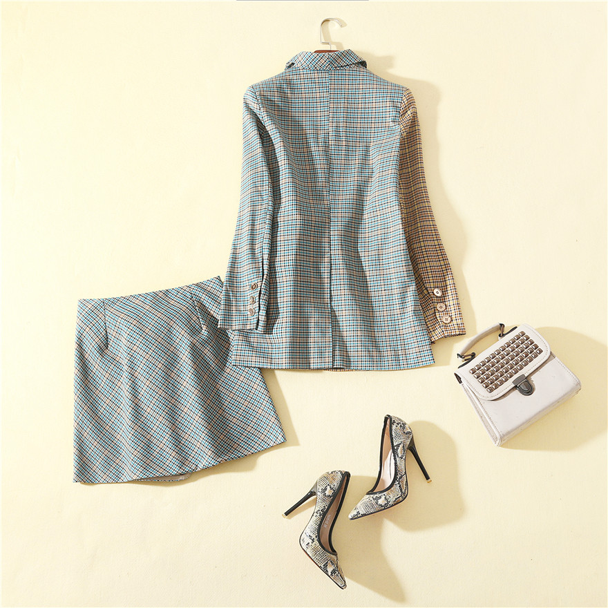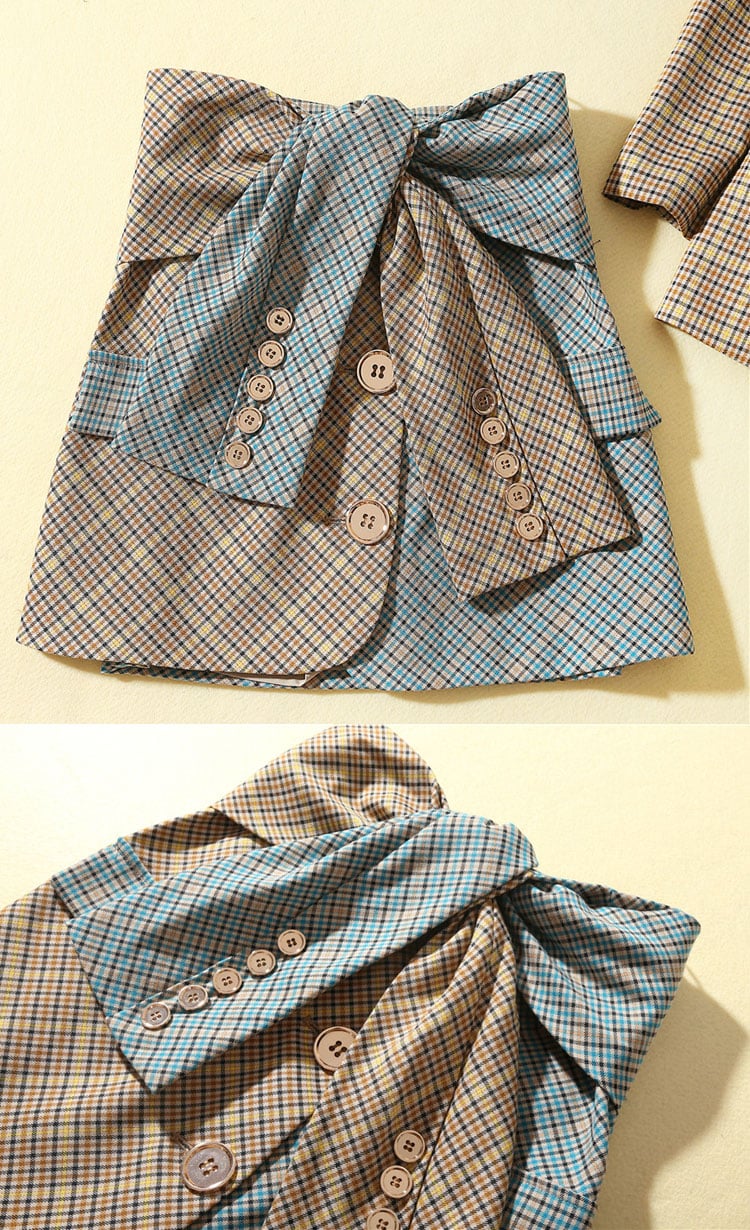 BBL DESIGN CO ORD SELF BELT BLAZER AND MATCHING SKIRT IN CHECK