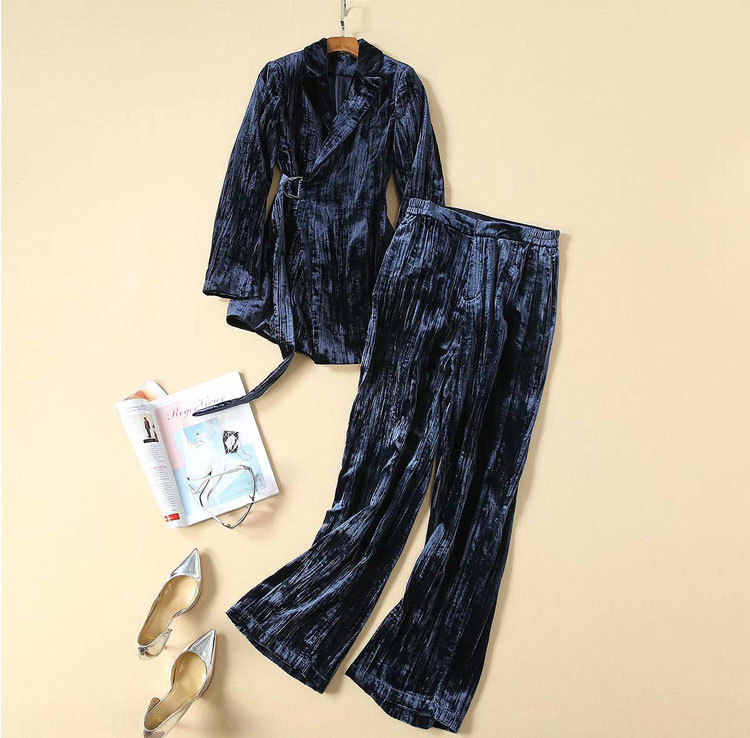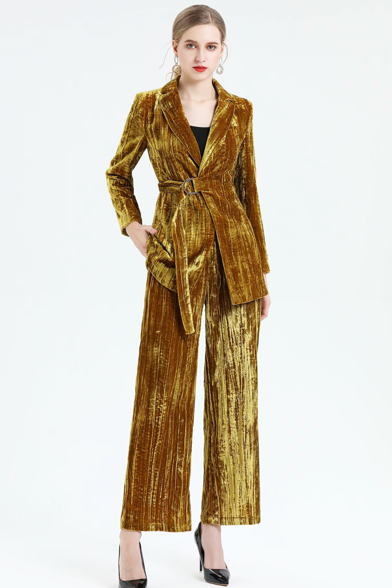 BBL DESIGN VELVET TIE WAIST BLAZER AND WIDE LEG TROUSER CO ORD
