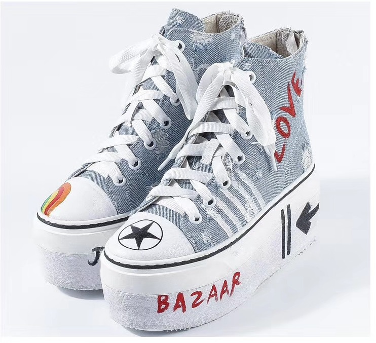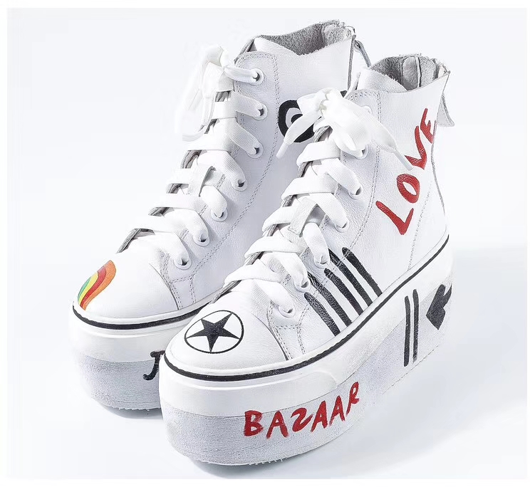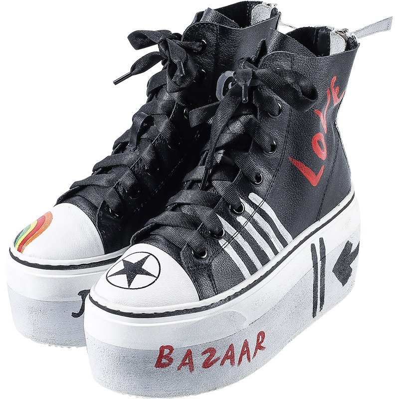 DONNA JENNIFER BAZAAR VOGUE GRAFFITI STYLE CHUNKY PLATFORM LEATHER WOMEN SHOES