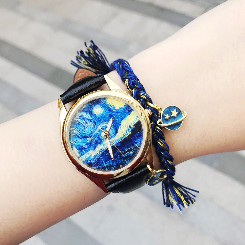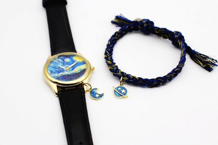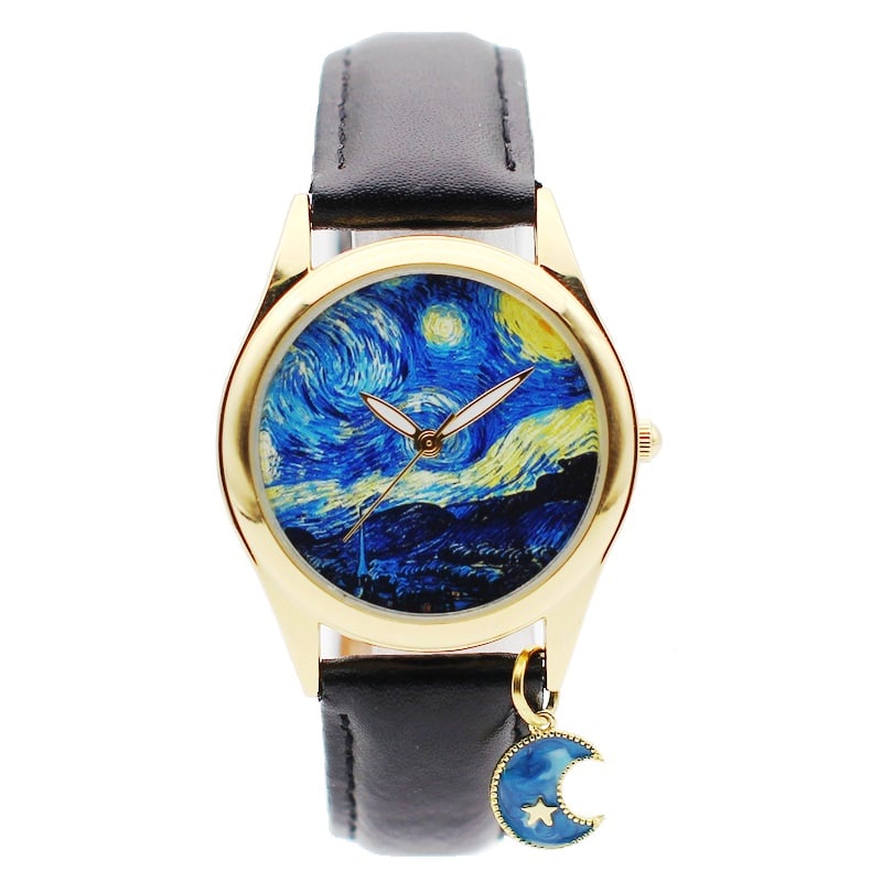 BOSSELO ART MOON PLANET DIAL QUARTZ WATCH