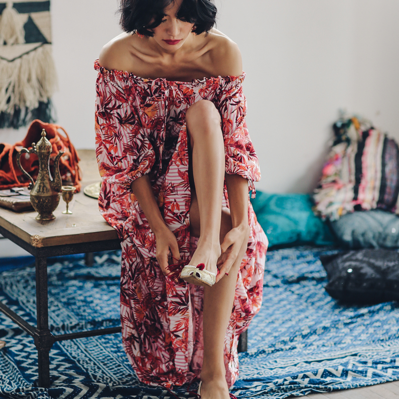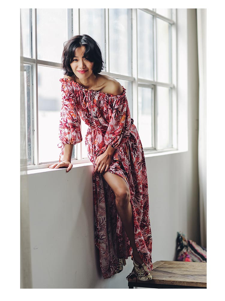 SINCE THEN OFF SHOULDER MAXI DRESS IN TROPICAL PRINT