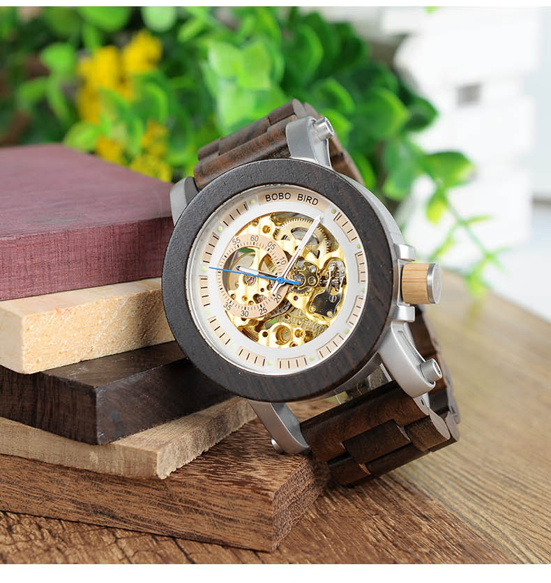 BOBO BIRD NORTH STEAMPUNK AUTOMATIC DIAL WOODEN WATCH