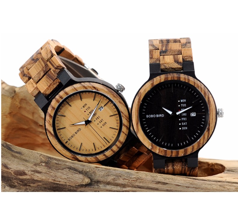 BOBO BIRD WOODEN ZEBRA RETRO QUARTZ WATCH