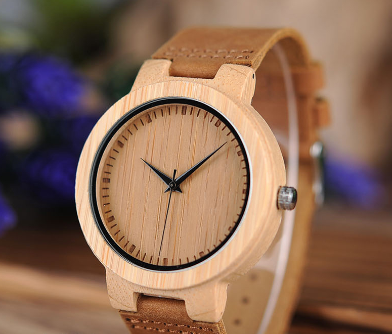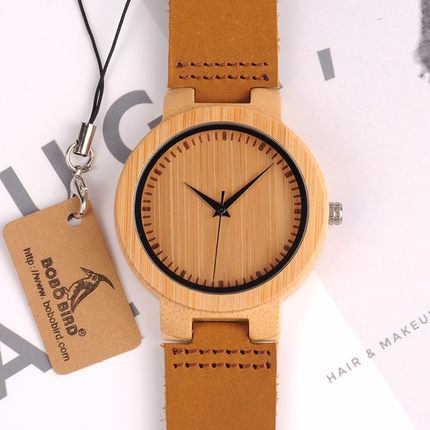 BOBO BIRD HANDMADE BAMBOO WOODEN ANTIQUE WATCH WITH LEATHER STRAP IN TAN