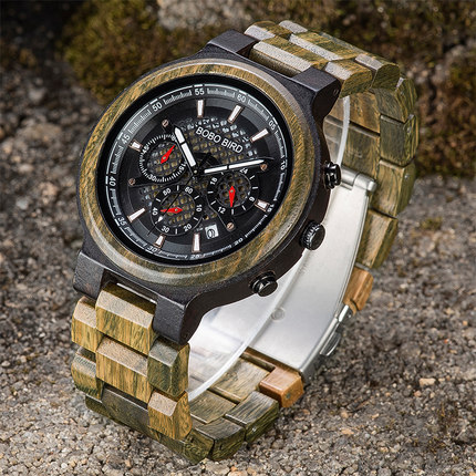 BOBO BIRD CONCEPT MULTI FUNCTION SANDALWOOD WATCH IN CAMO GREEN