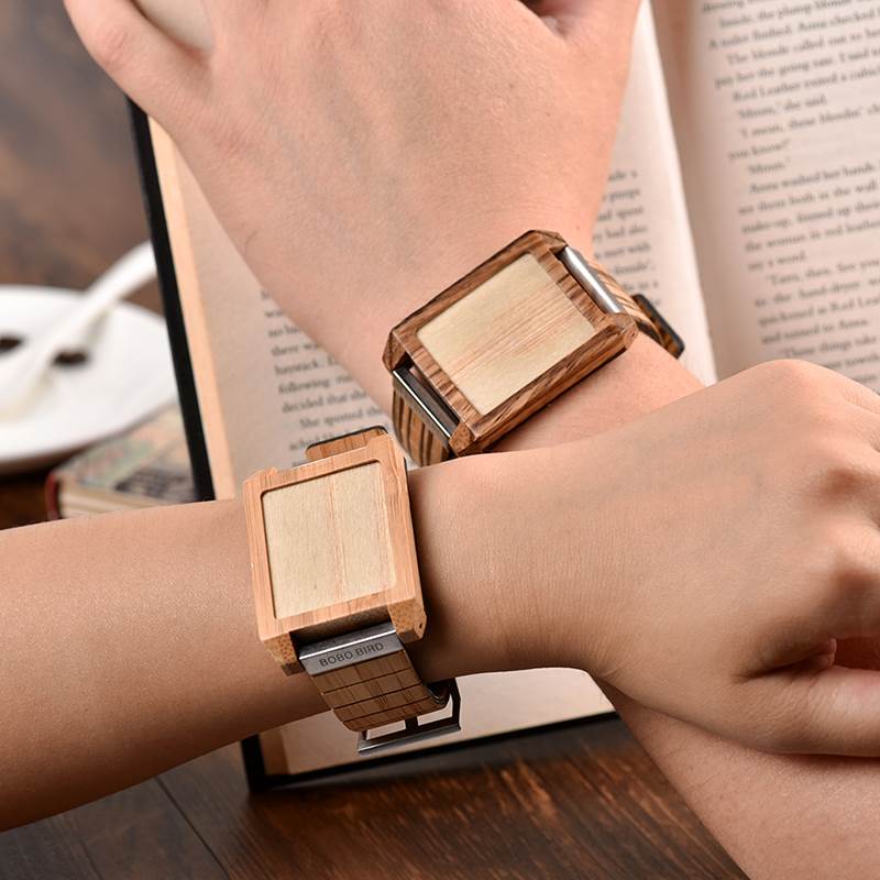 BOBO BIRD SQUARE WOODEN LED TOUCH SCREEN DISPLAY WATCH