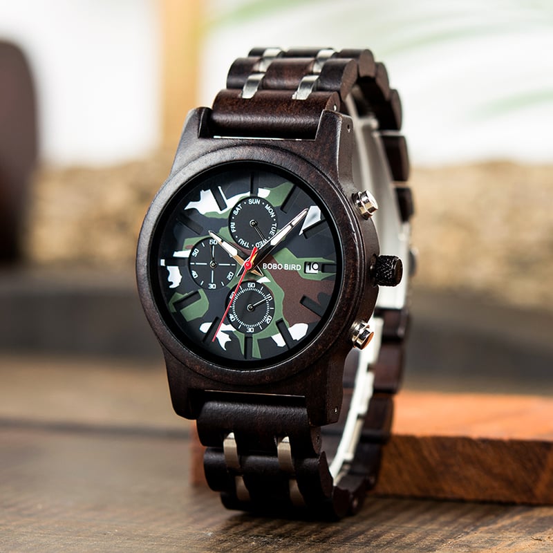 BOBO BIRD CARMO OPTICA WOODEN WATCH IN CAMOUFLAGE