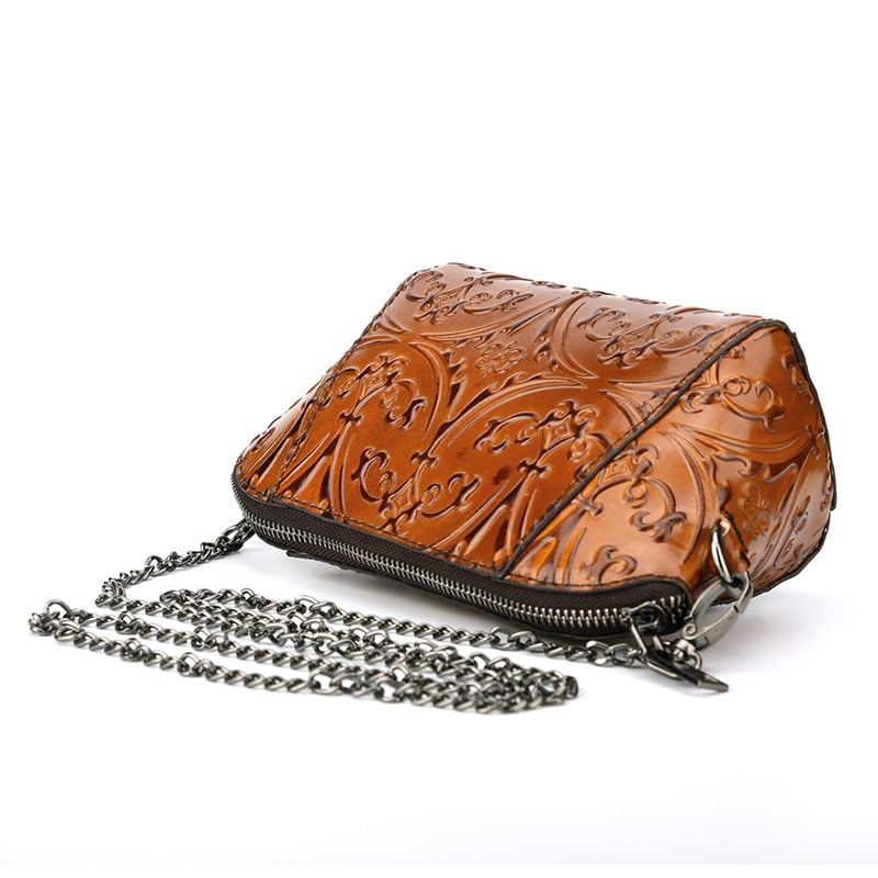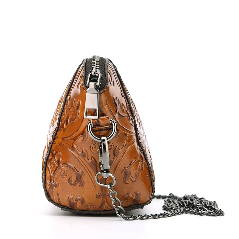 BAOERSEN ROCKEX LEATHER CLUTCH HANDBAG WITH CHAIN IN KHAKI