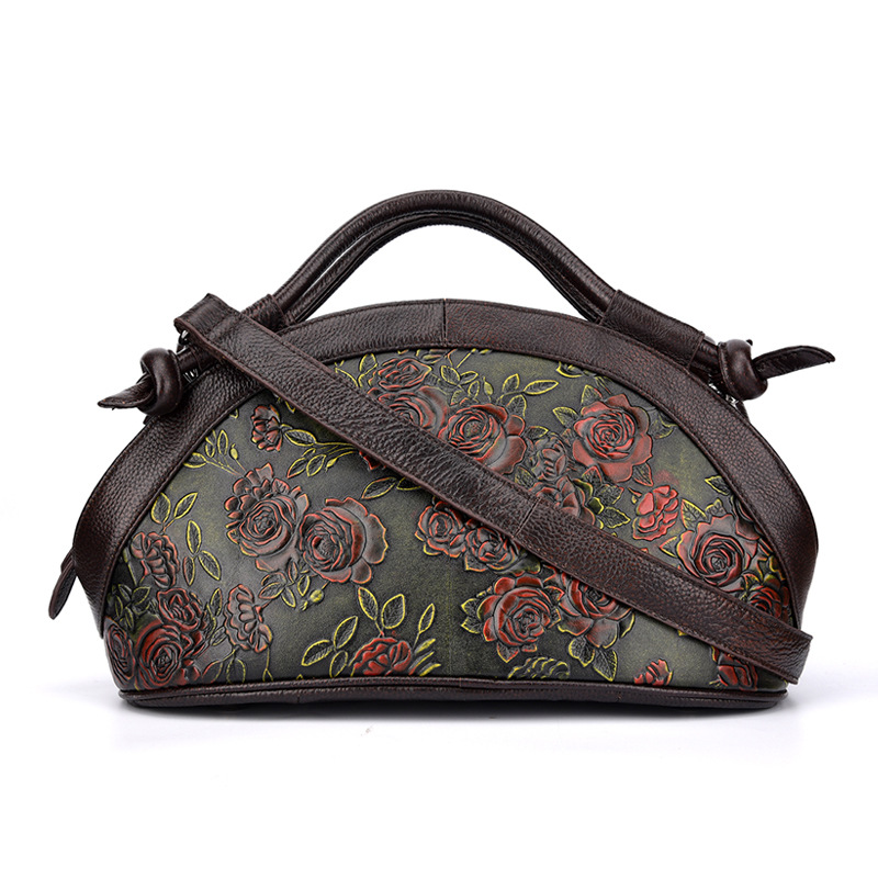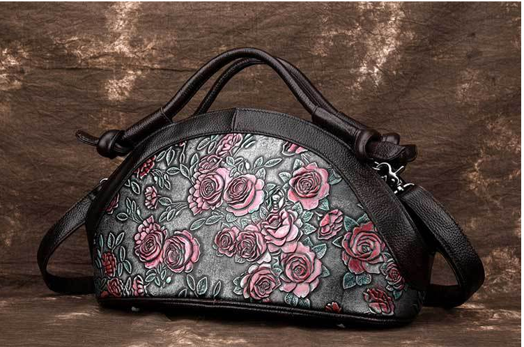 ENVIYO BOOPDO RETRO DESIGN HAND BRUSHED ROSE EMBOSSED LEATHER SLUNG HANDBAGS