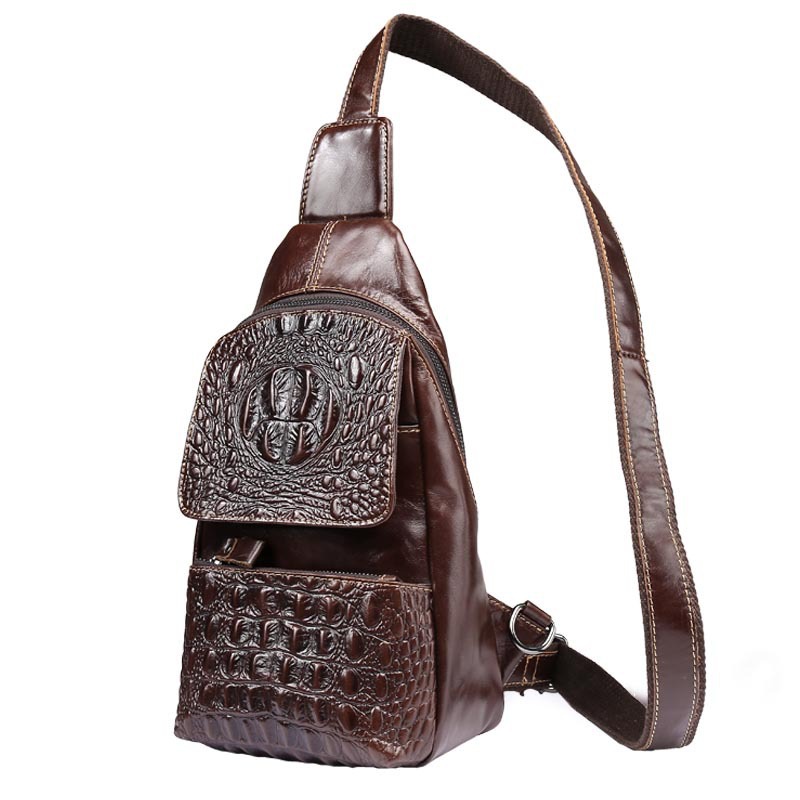 ZADA JINIWU CROCODILE LEATHER MESSENGER CHEST BAG