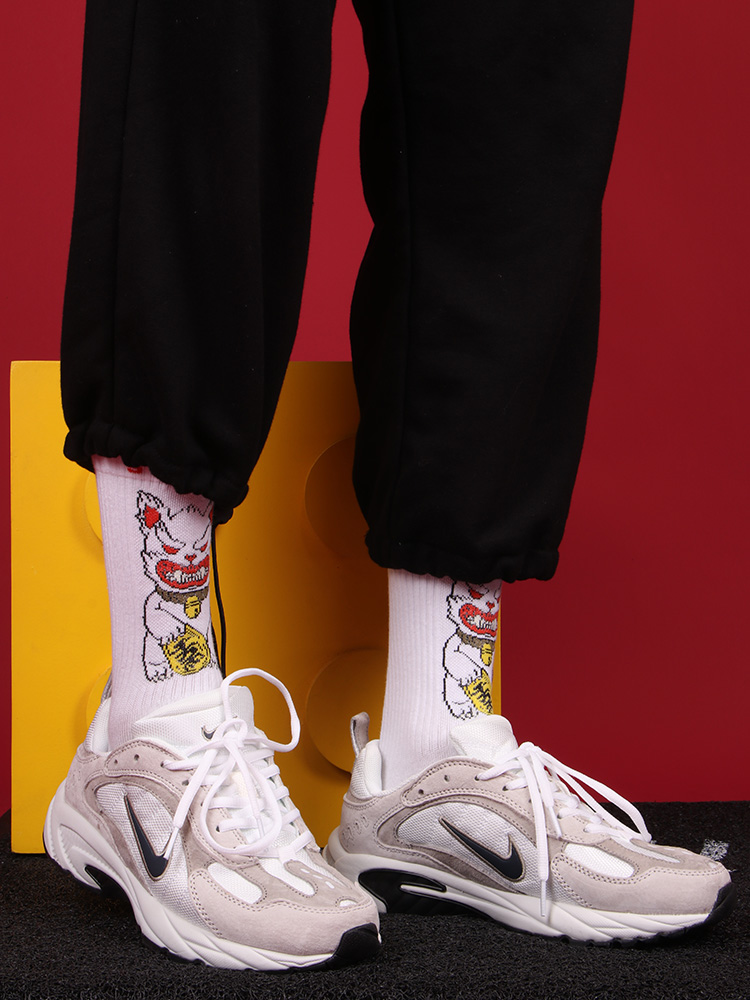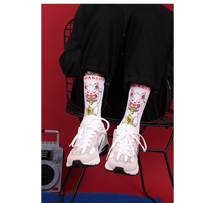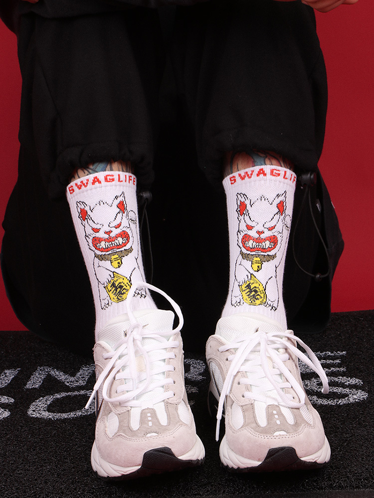 ZWILL UNIQUE SWAG LIFE CHINESE LUCKY CAT SOCKS IN WHITE