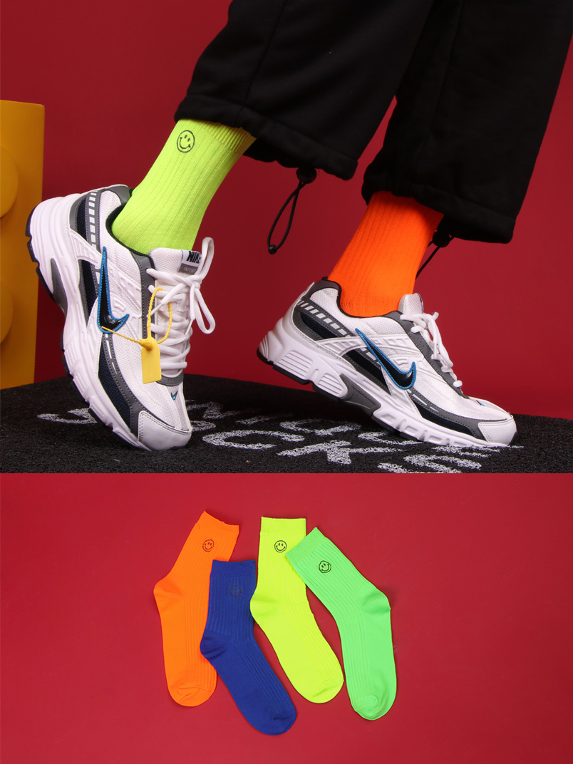ZWILL UNIQUE SMILEY FACE PRINT FLUORESCENT UNISEX SOCKS