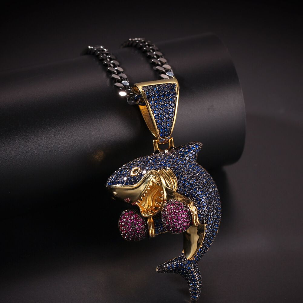 ZACKZIE ZIRCON ALUMINA BOXING SHARK PENDANT NECKLACE