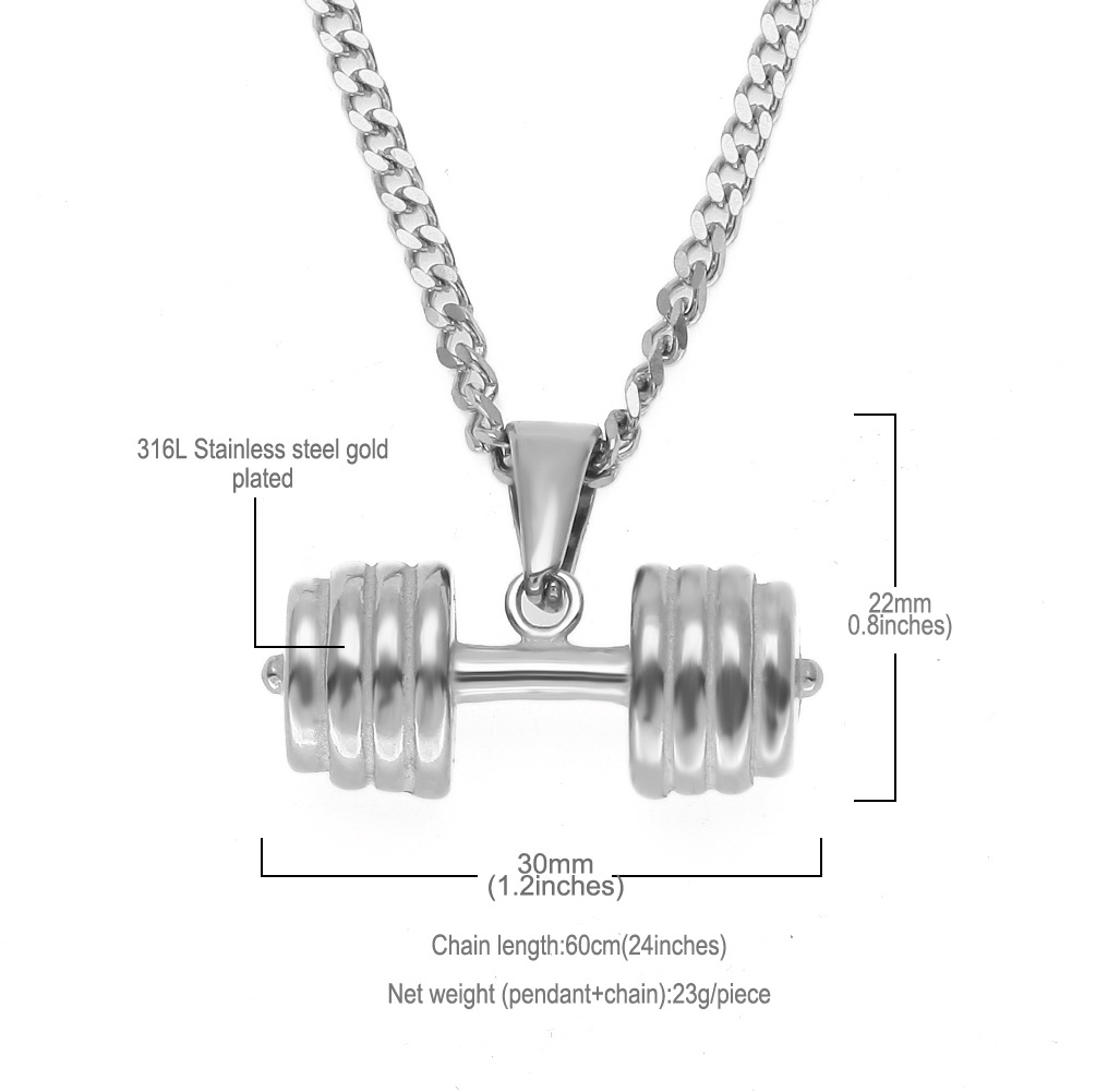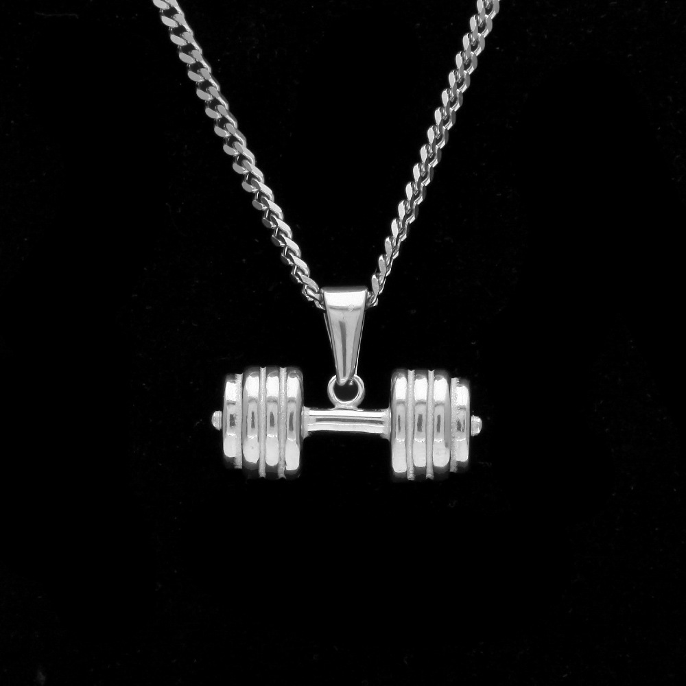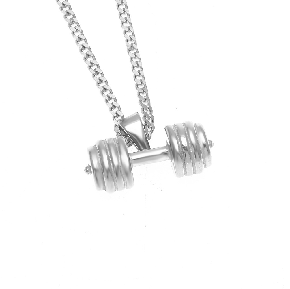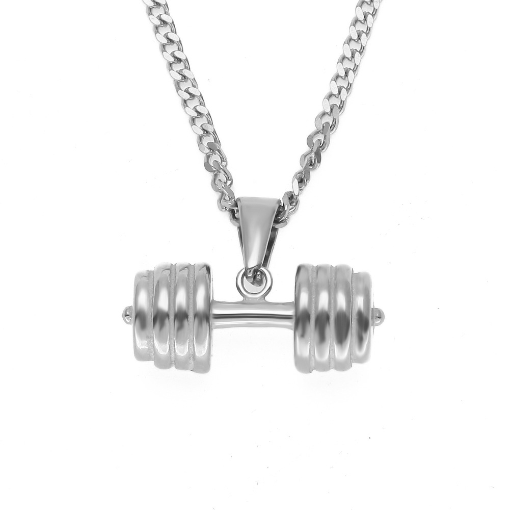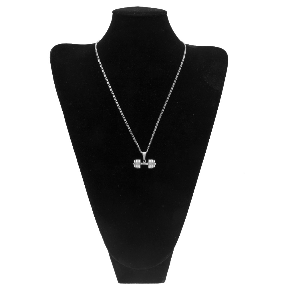 ZONIYA PUNK STAINLESS STEEL BARBELL FITNESS FIGURE NECKLACE IN SILVER