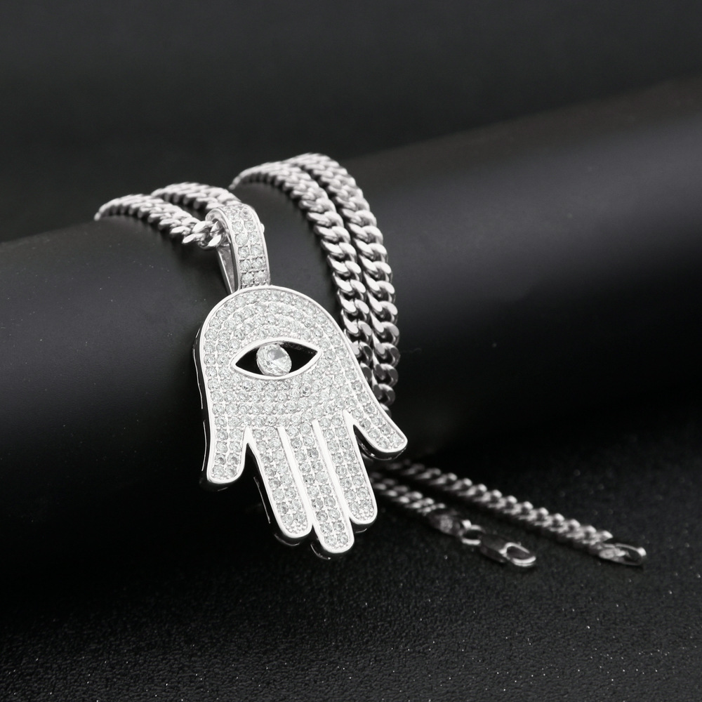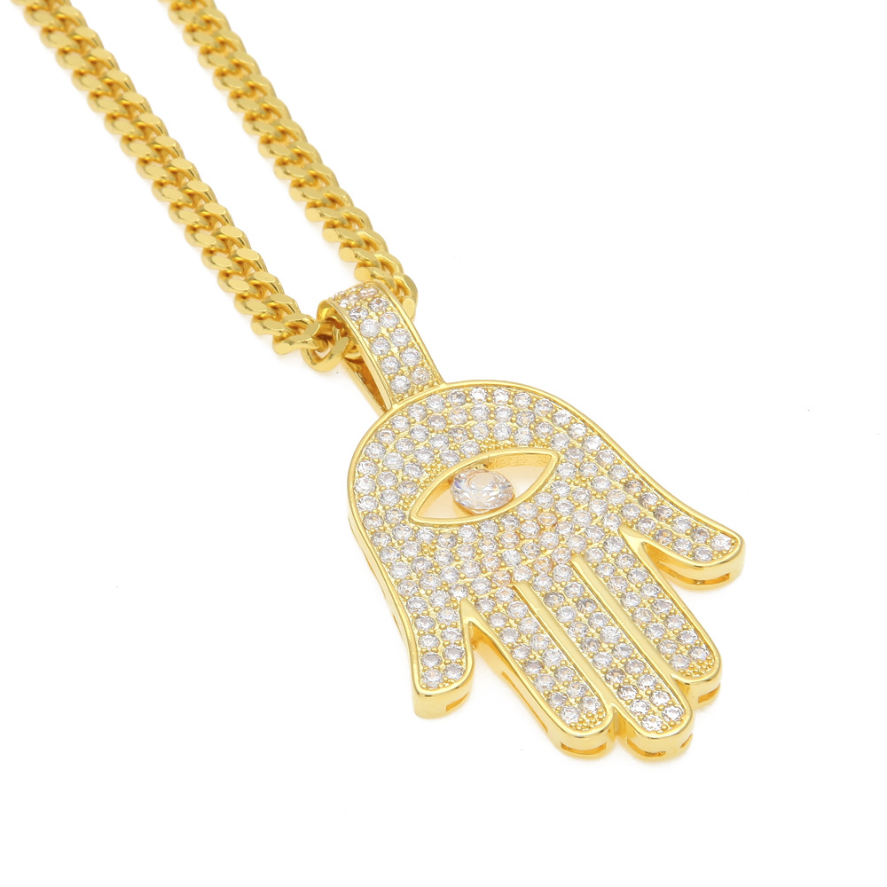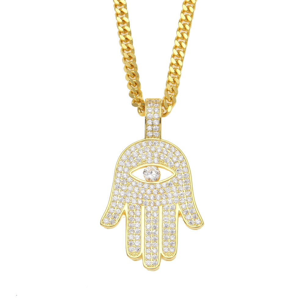 ZONIYA PUNK STAINLESS STEEL ZIRCON FATIMA HAND KHAMSAH NECKLACE