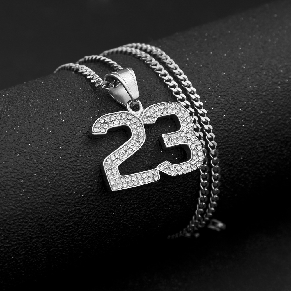 AZEEPA ZONIYA STAINLESS STEEL DIAMOND NUMBER 23 JERSEY NECKLACE IN SILVER