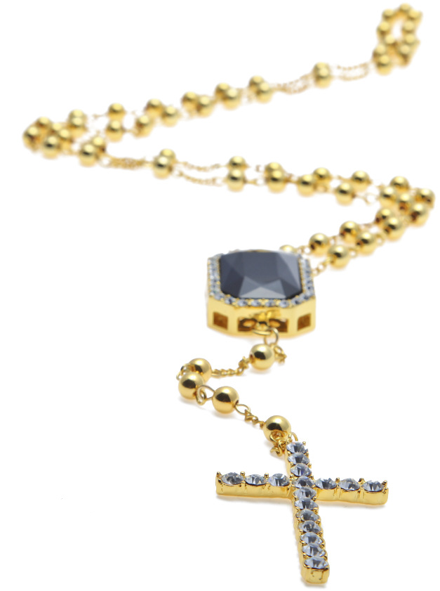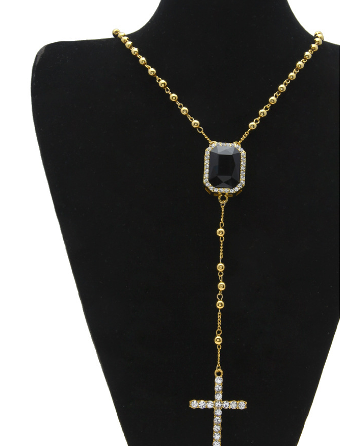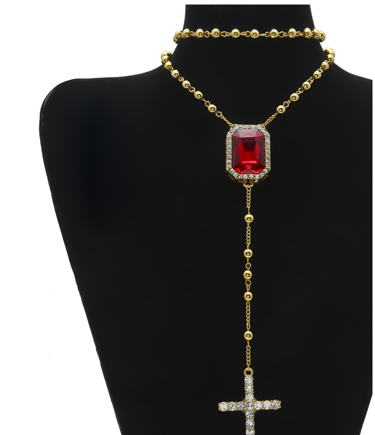RAZEEF TREVOR BEADED RUBY CROSS NECKLACE