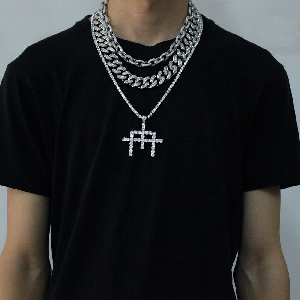 ISSA CRUZA OZMUNO CROSS CHAIN NECKLACE IN SILVER