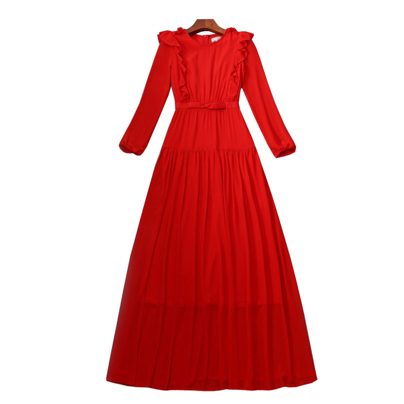 BBL DESIGN PLEATED WAISTED MAXI DRESS IN RED