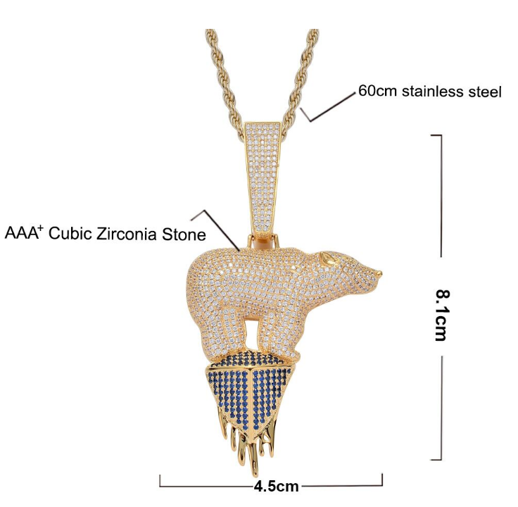 POLAR BEAR ENVIRONMENTAL THEME GLACIER CUBIC ZIRCONIA STONE NECKLACE