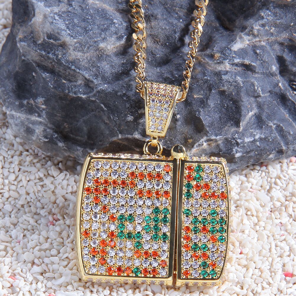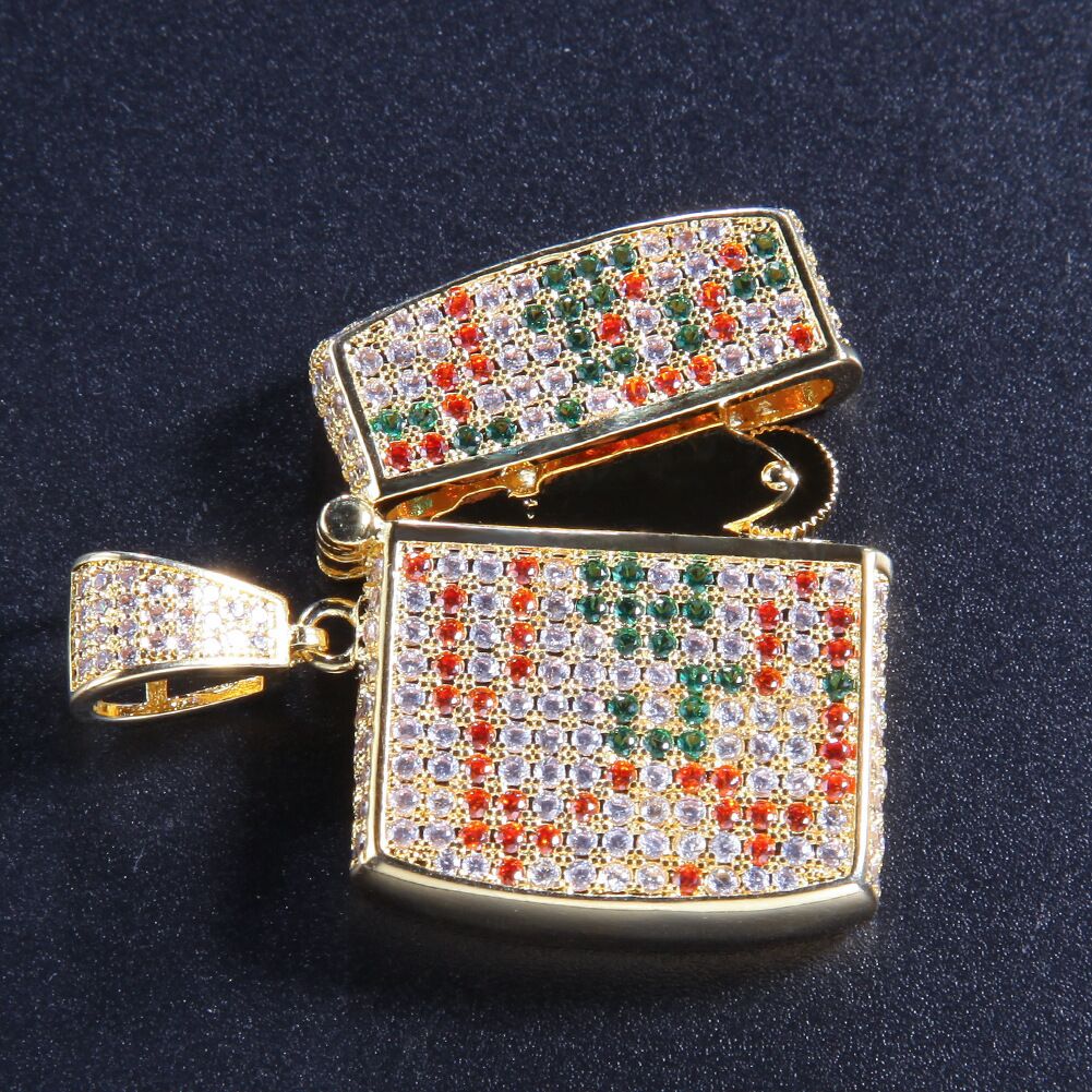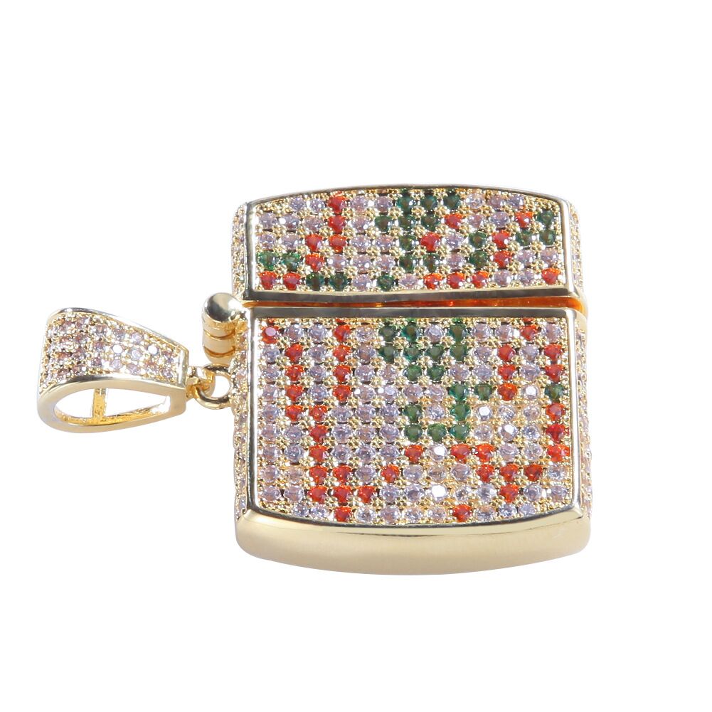 ZOA FOBO LIGHTER THEME PENDANT CUBAN CHAIN NECKLACE IN GOLD