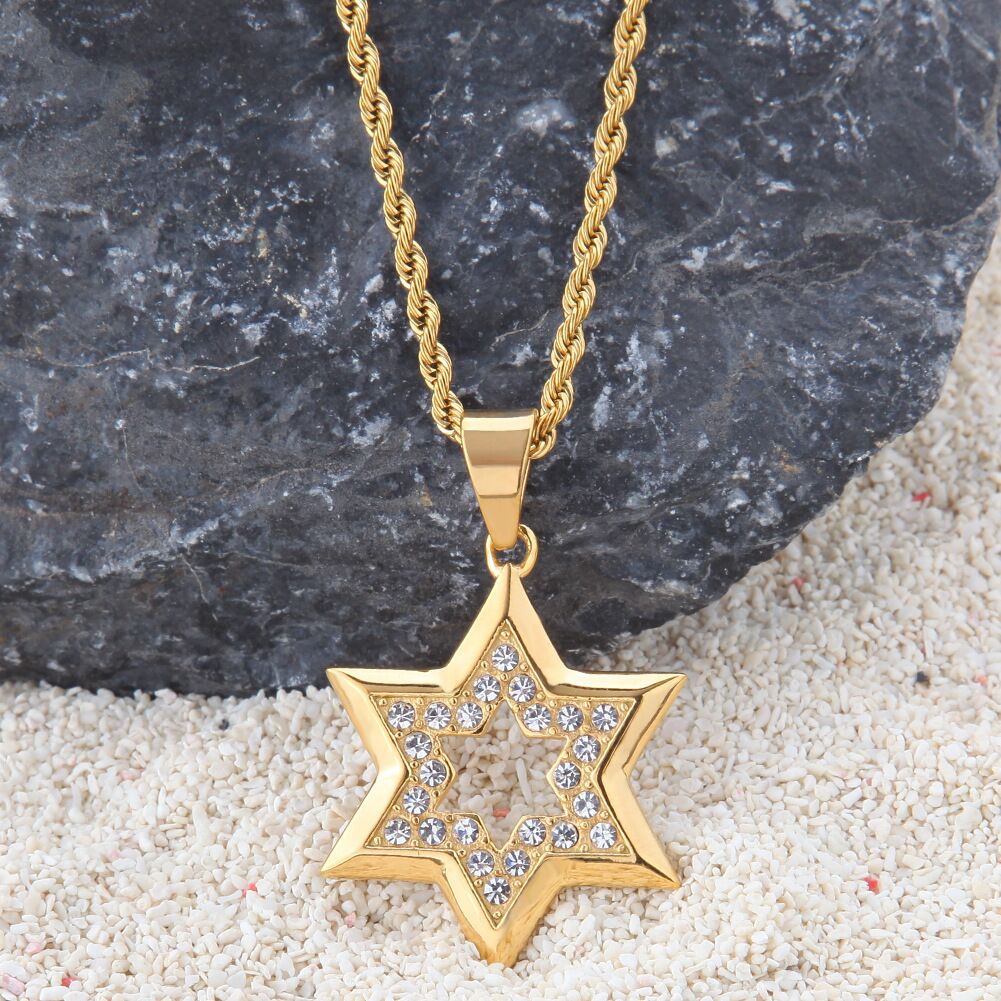 ROFO LOBO BOUTIQUE STAR OF DAVID HEXAGON NECKLACE WITH RHINESTONE