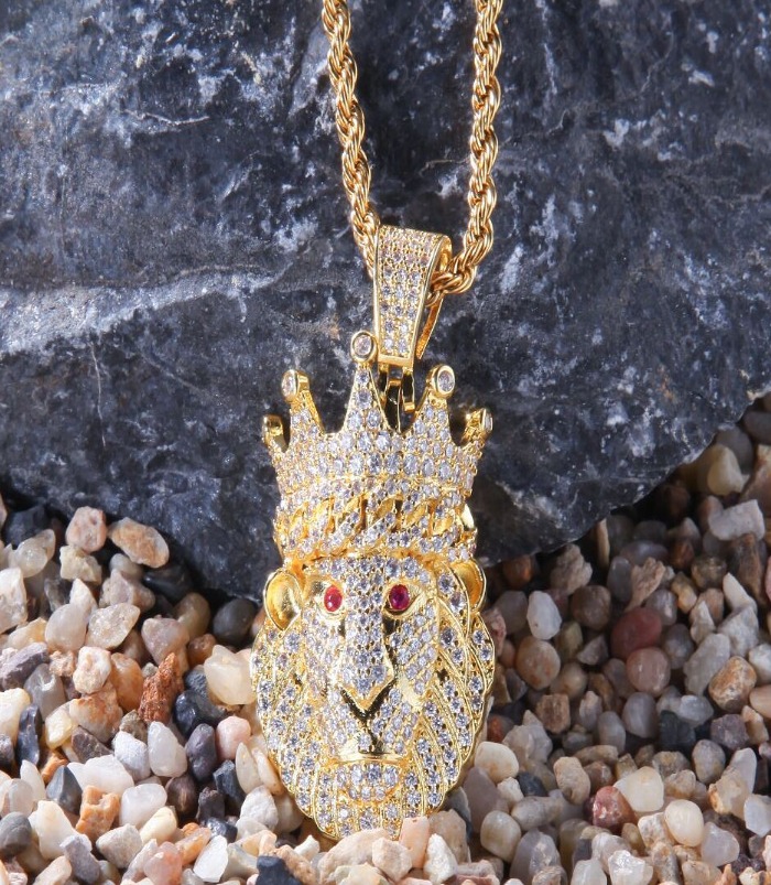 AKAO CROWN LION HEAD GOLD PLATED ZIRCON PENDANT NECKLACE IN GOLD