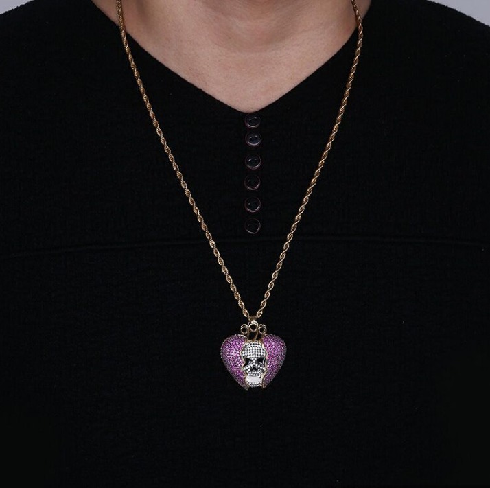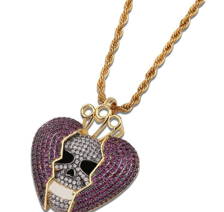 AKAO JUICE WRLD DEVIL SKULL HEART BROKEN ZIRCON PENDANT NECKLACE