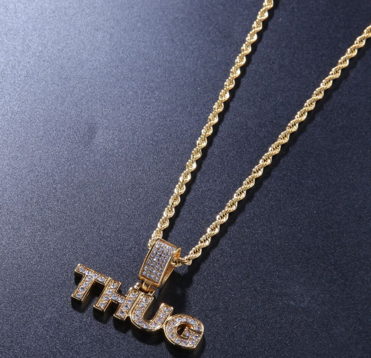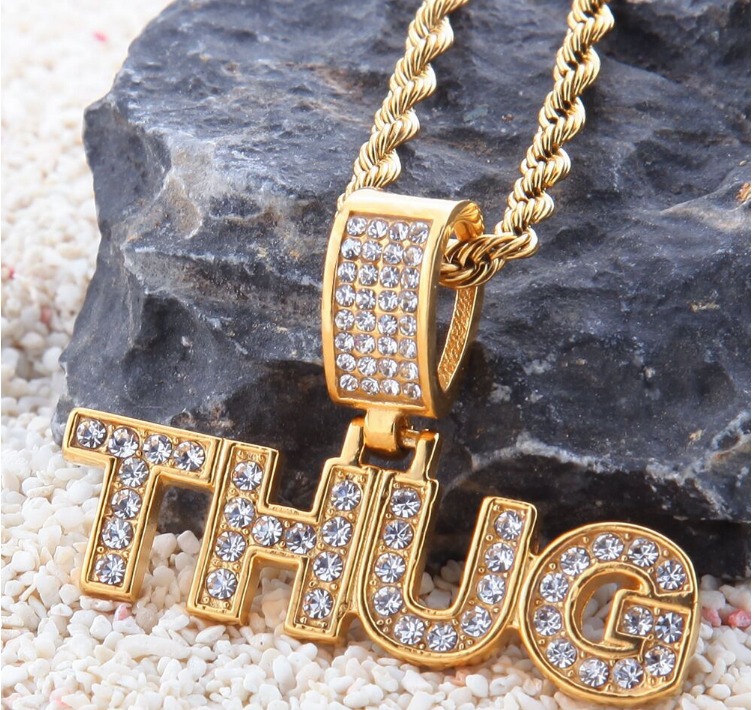 THUG SAVAGE DJ RAP HIP HOP STYLE CHAIN PENDANT WITH RHINESTONE