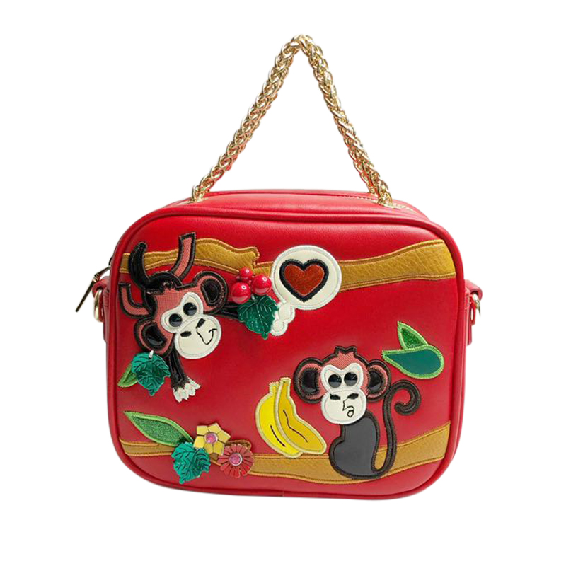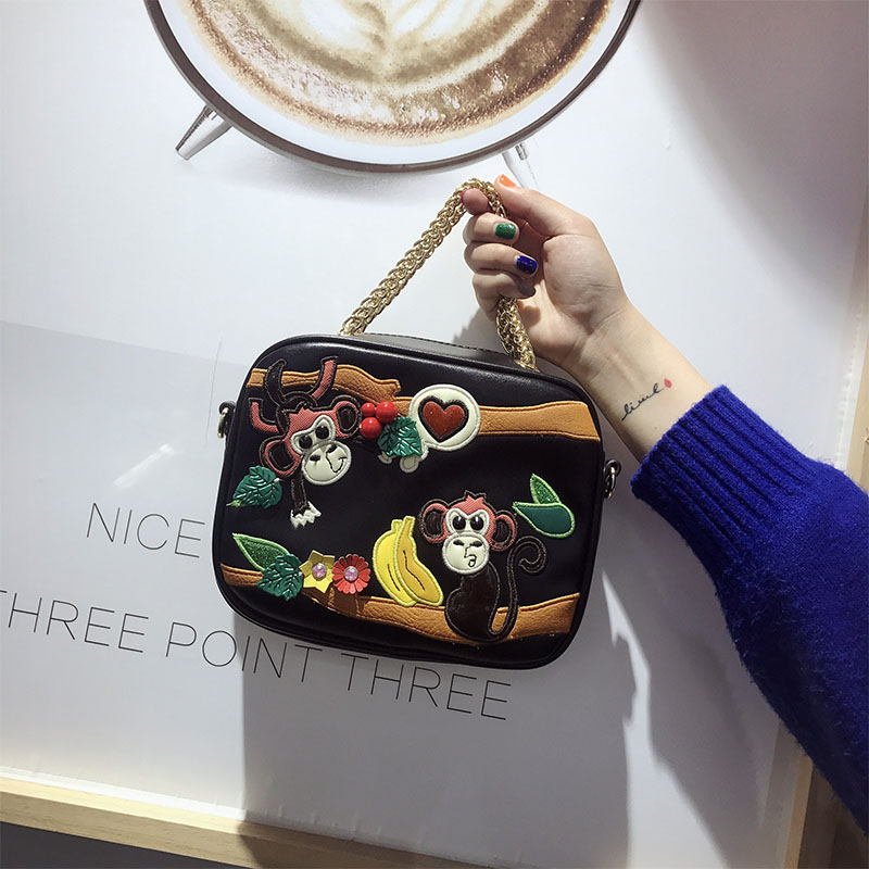LETIFE EMBROIDERY CRAFT SQUARE SHOULDER SMALL BAG WITH CROSS CHAIN