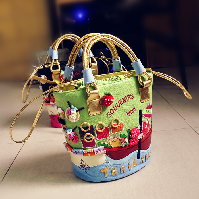 LETIFE SOUVENIRS FROM THAILAND HAND EMBROIDERED BUCKET MESSENGER BAG