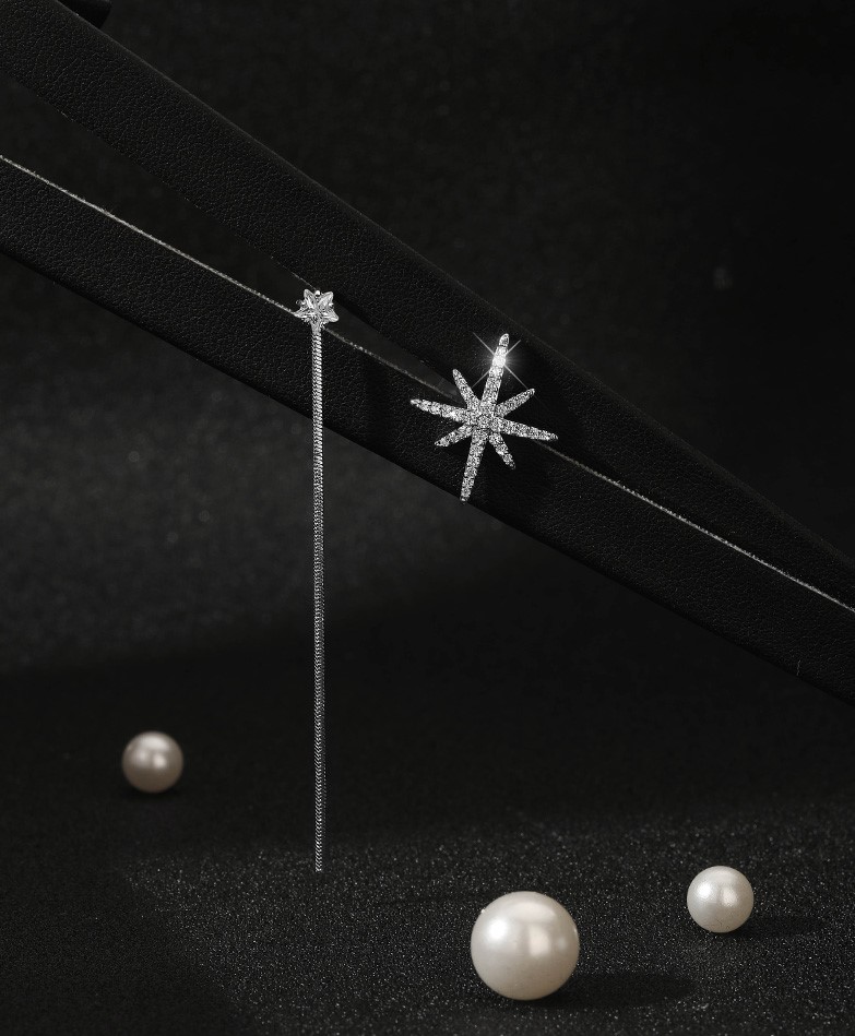 UZL DESIGN GOLD PLATED CRYSTAL EARRINGS WITH CHAIN DROP