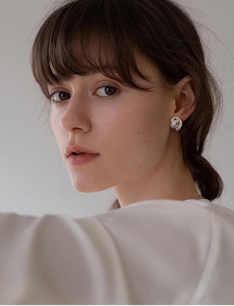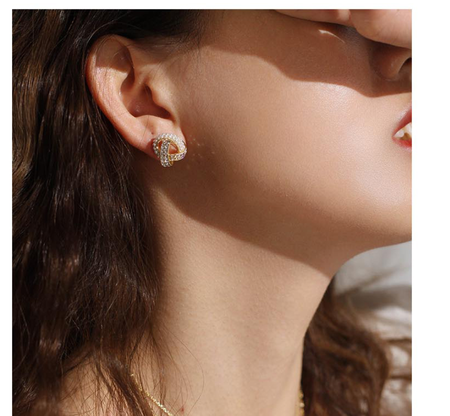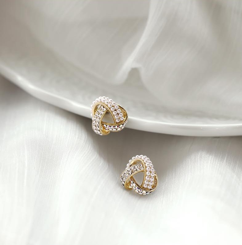 UZL DESIGN PEARL AND CRYSTAL DOUBLE HOOP EARRINGS IN GOLD PLATE