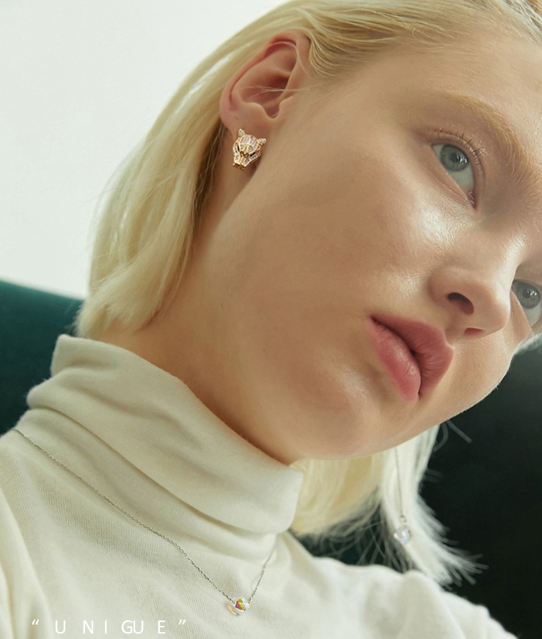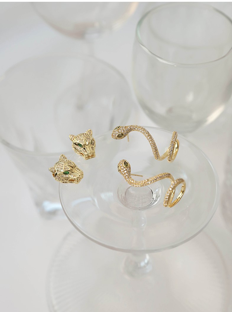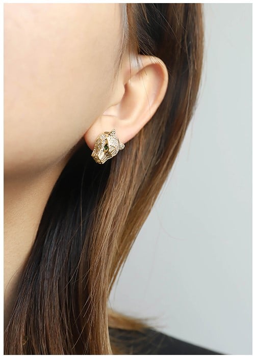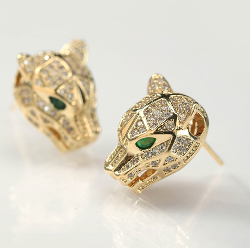 UZL DESIGN STUD LEOPARD EARRINGS IN MULTI CRYSTAL