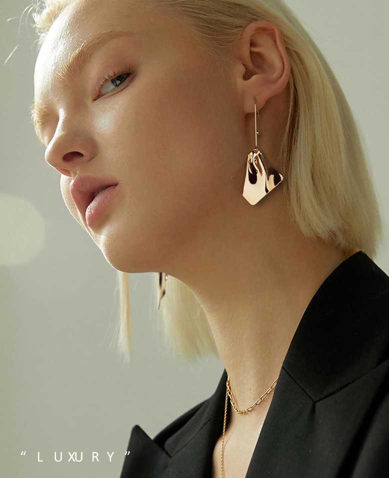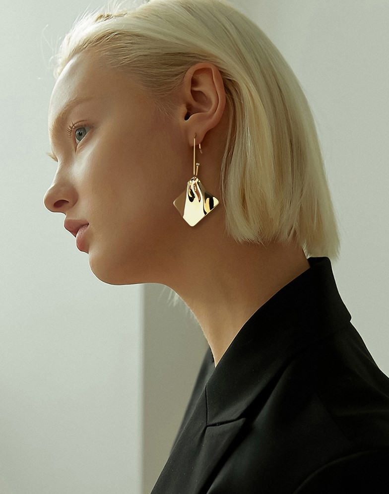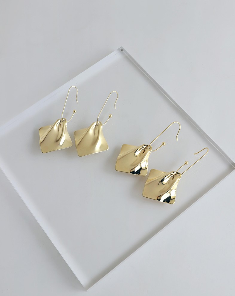 UZL DESIGN PULL THROUGH SQUARE DROP EARRINGS IN GOLD PLATE