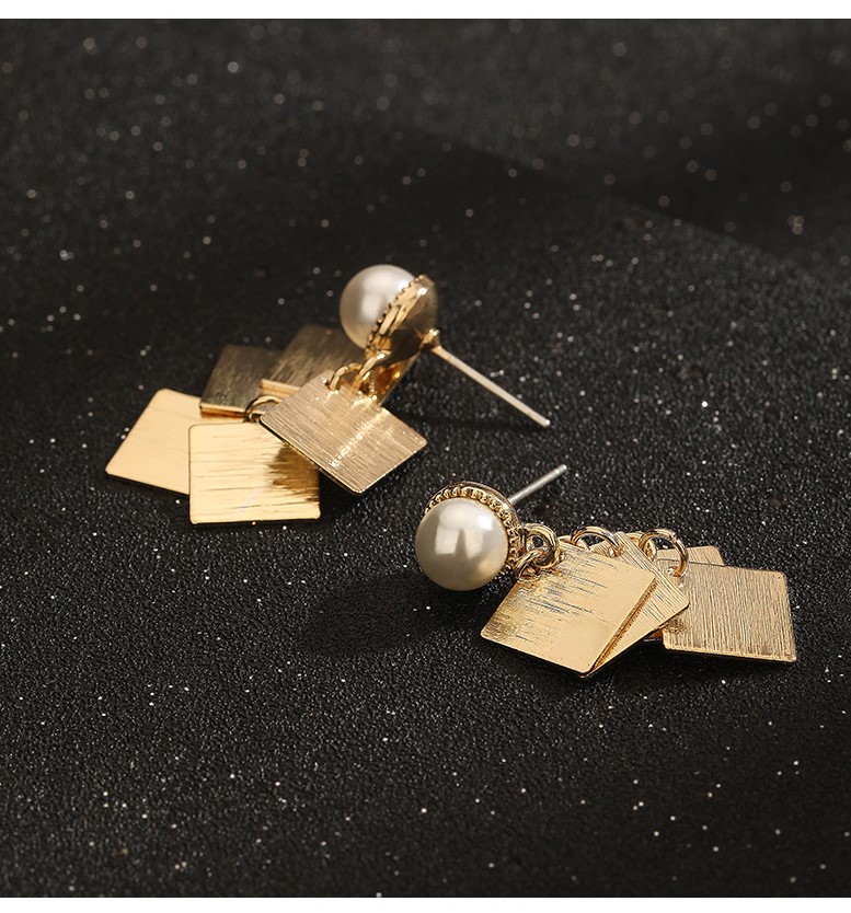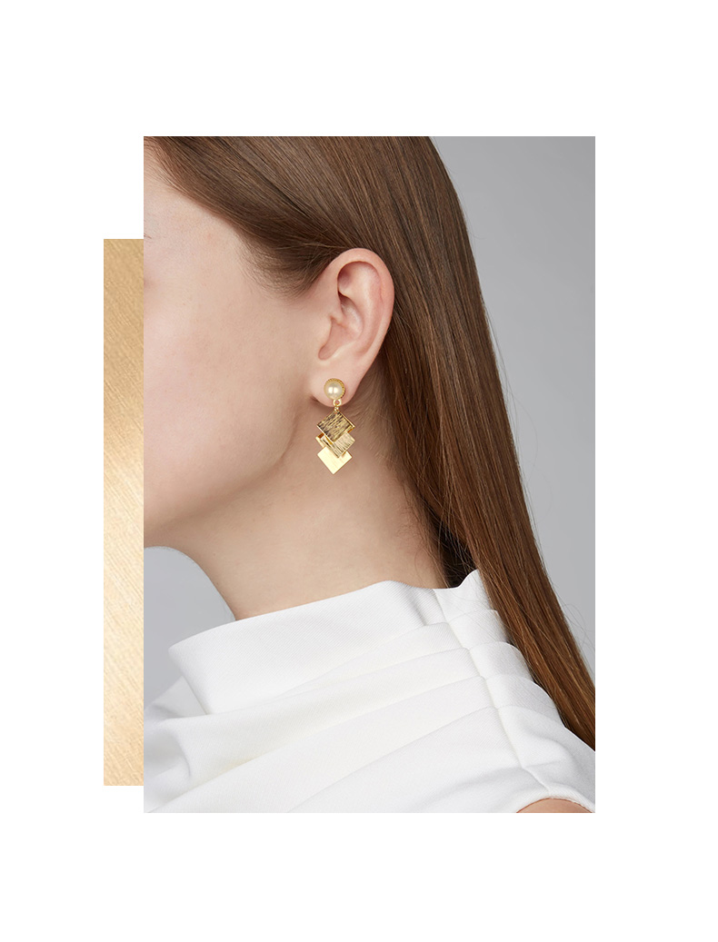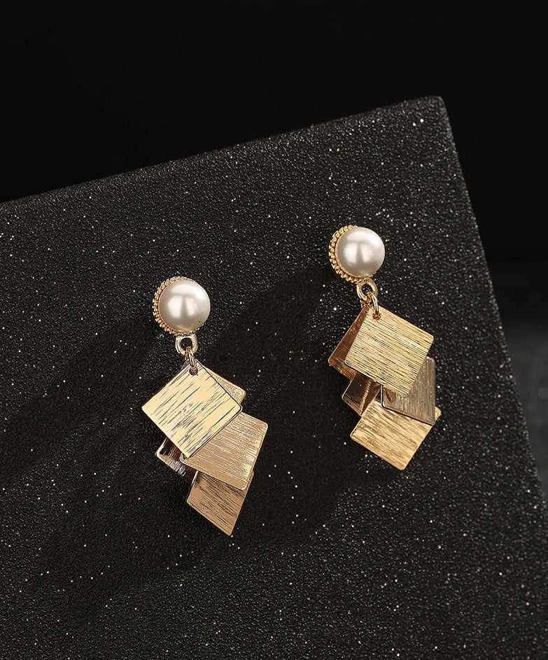 UZL DESIGN EARRINGS WITH PEARL STUD AND METAL DROP IN GOLD PLATE
