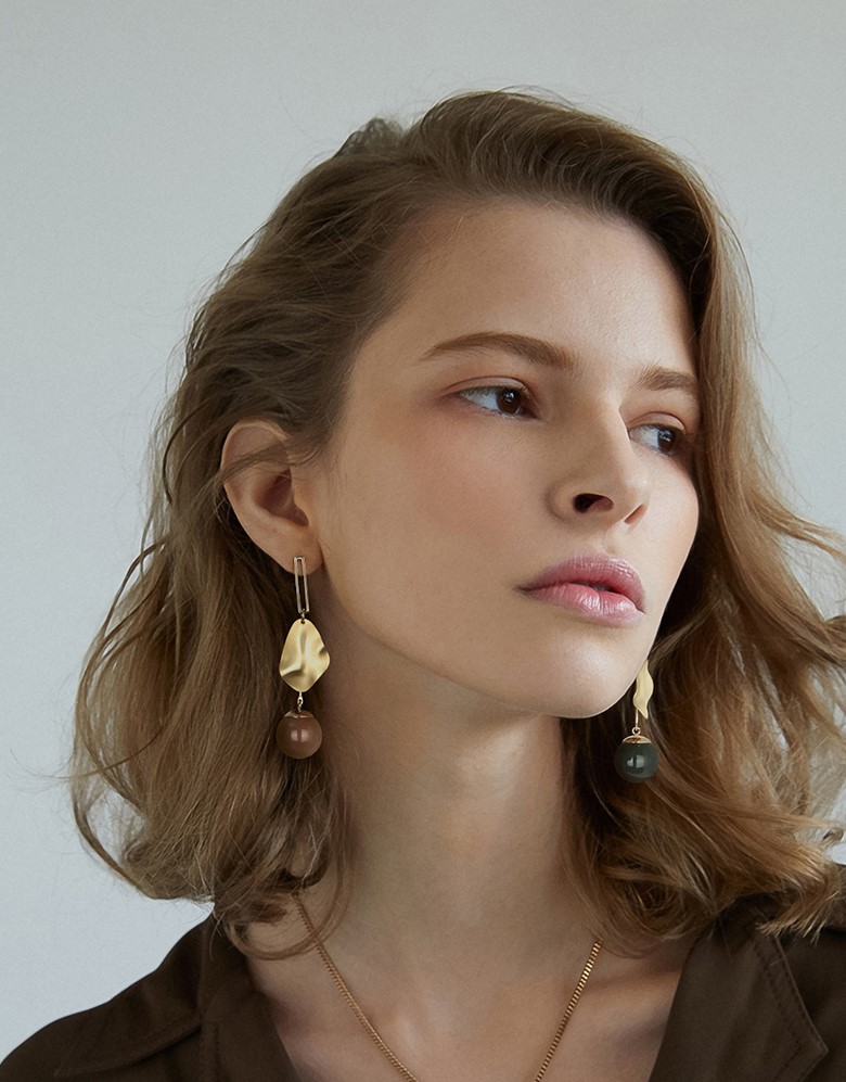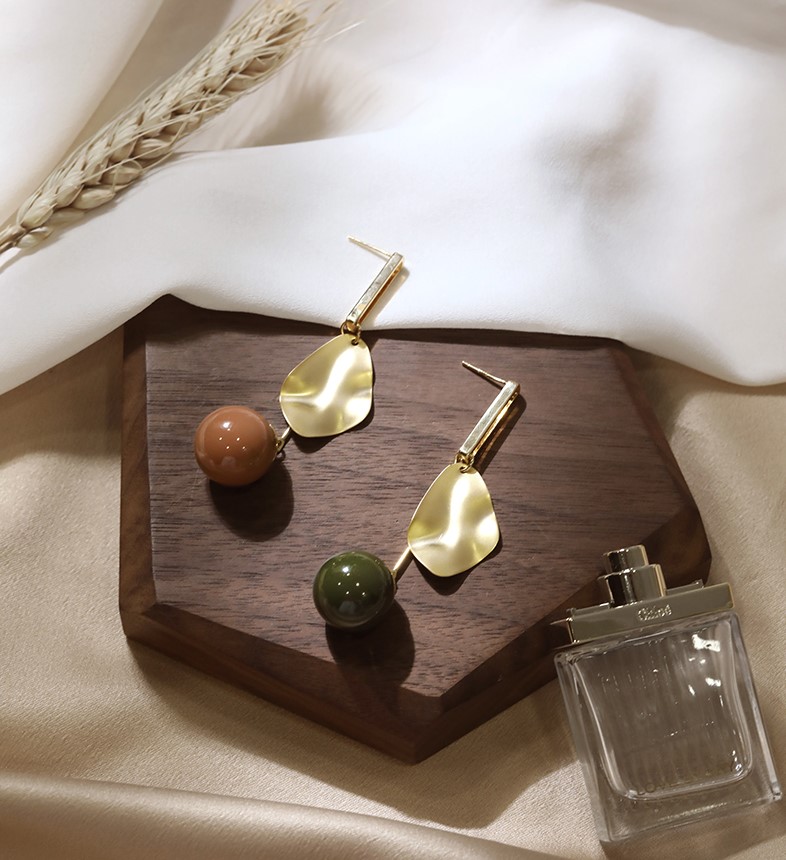 UZL DESIGN GOLD PLATED CHAIN LINK AND BALL DROP EARRINGS