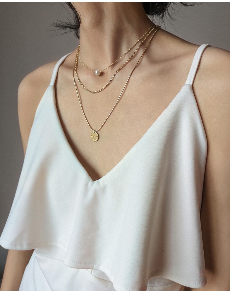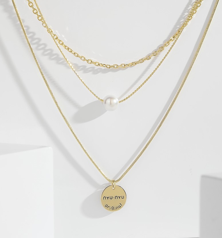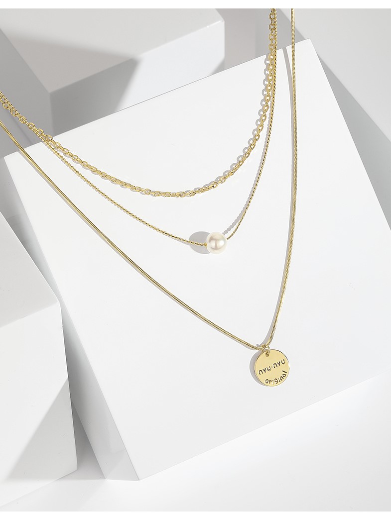 UZL DESIGN GOLD PLATE MULTIROW NECKLACE WITH PEARL AND COIN PENDANT