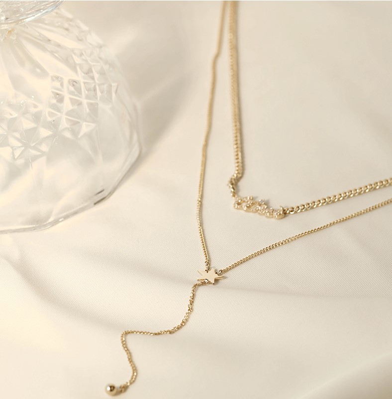 UZL DESIGN MULTIROW NECKLACE WITH CRYSTAL AND STAR DROP