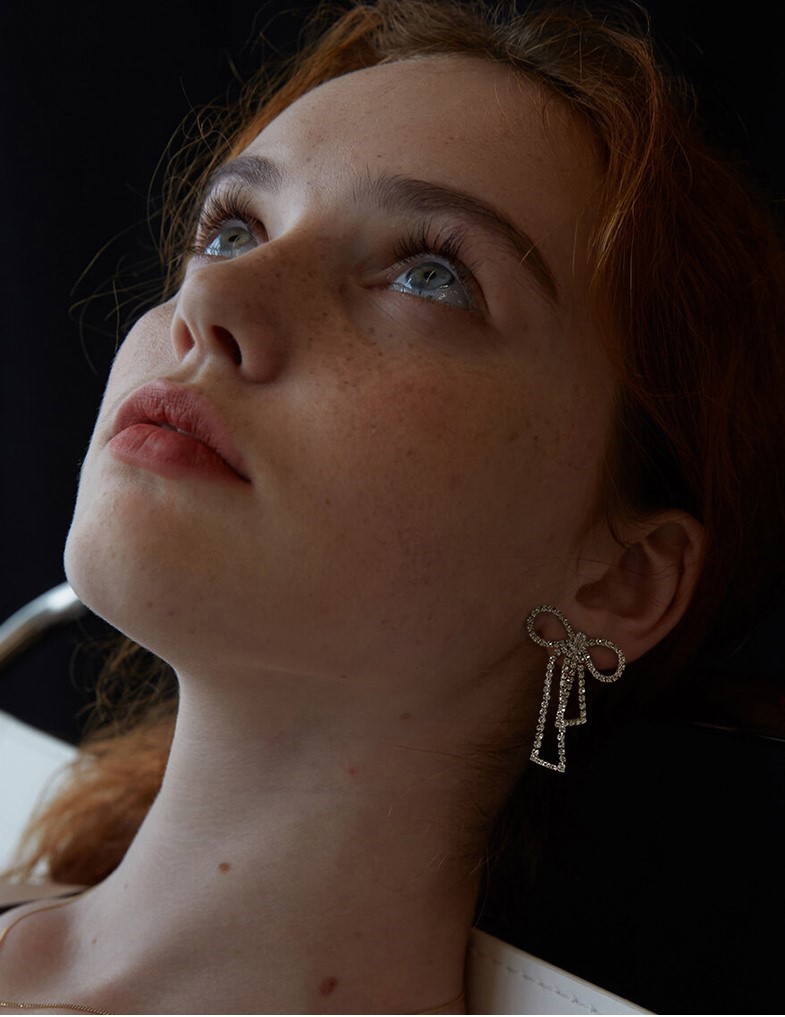 UZL DESIGN BOW DETAIL CRYSTAL EARRINGS IN GOLD PLATE