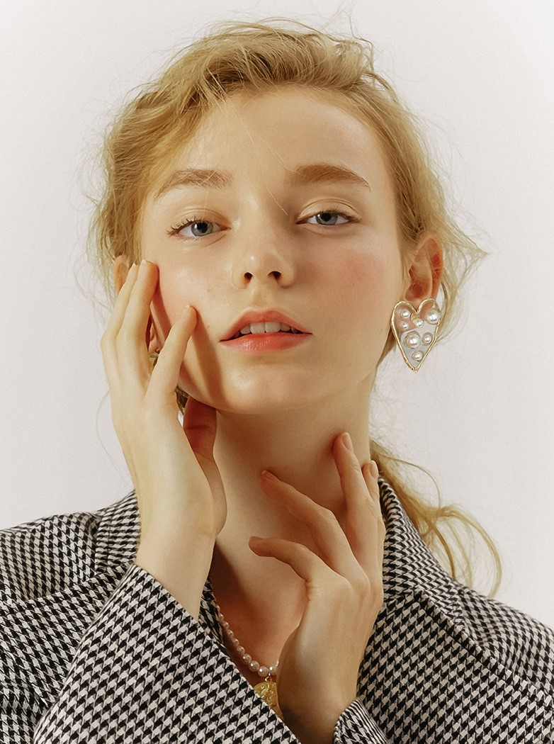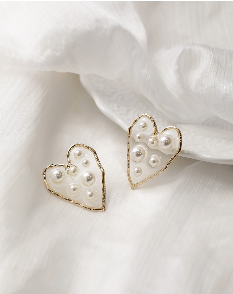 Stud style Heart-shaped design Pearl embellished Butterfly back Gold plate