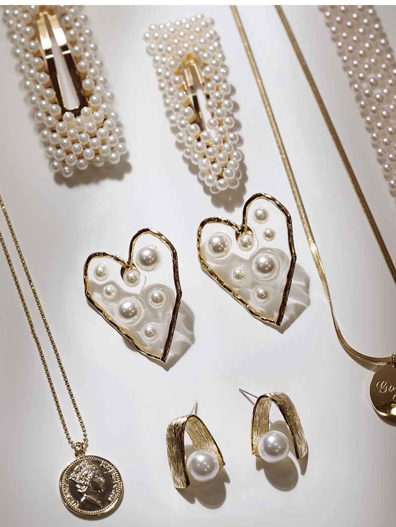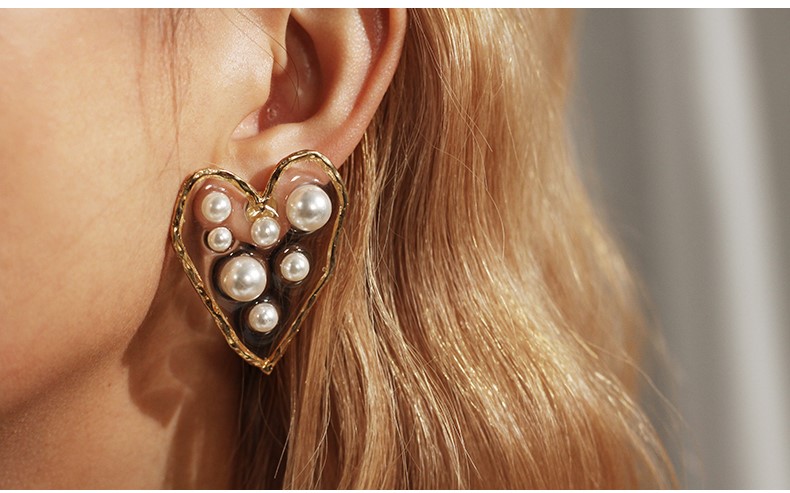 UZL OVERSIZED HEART SHAPED EARRINGS WTH PEARL EMBELLISHED IN GOLD PLATE