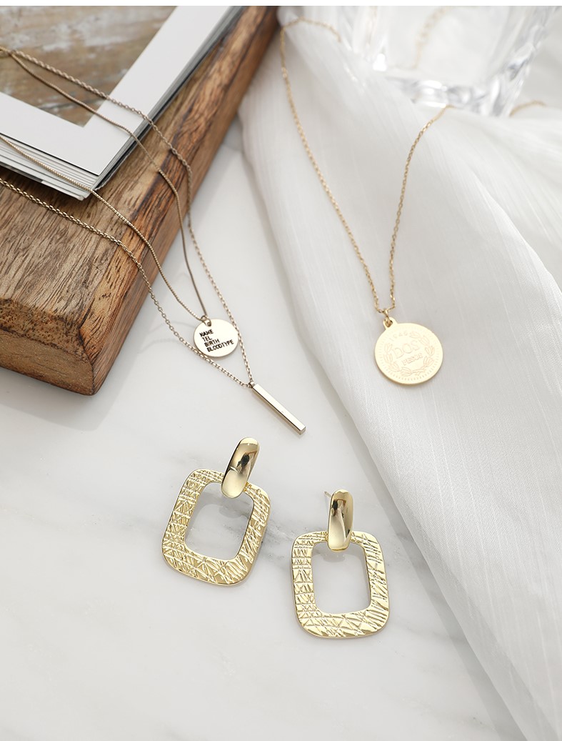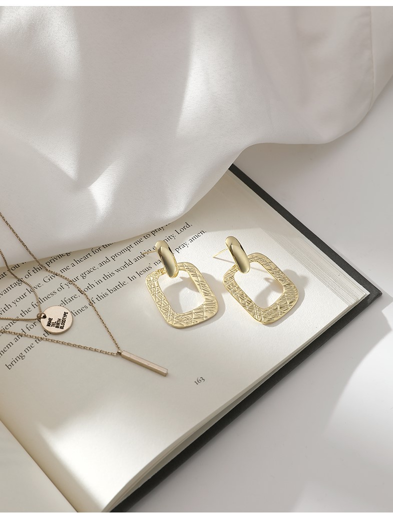 UZL DESIGN GOLD PLATED TEXTURED SQUARE DROP EARRINGS
