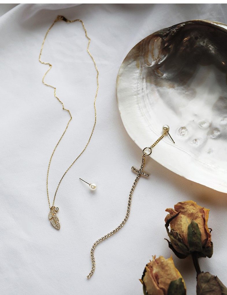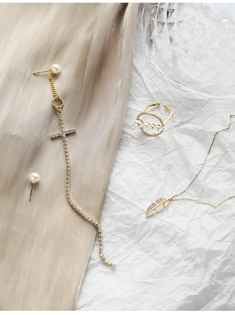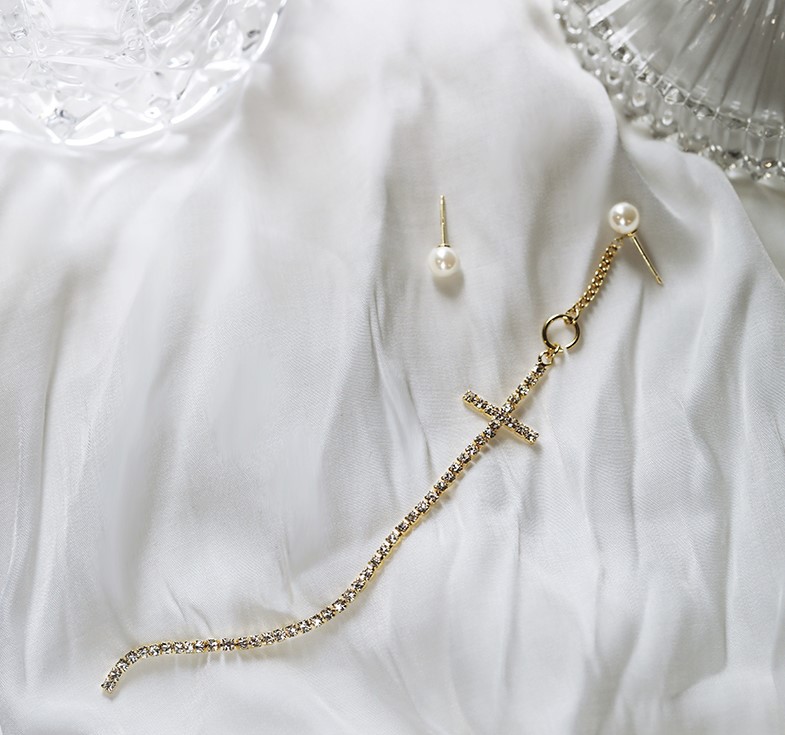 UZL DROP EARRINGS IN CROSS WITH CRYSTALS AND PEARL DESIGN