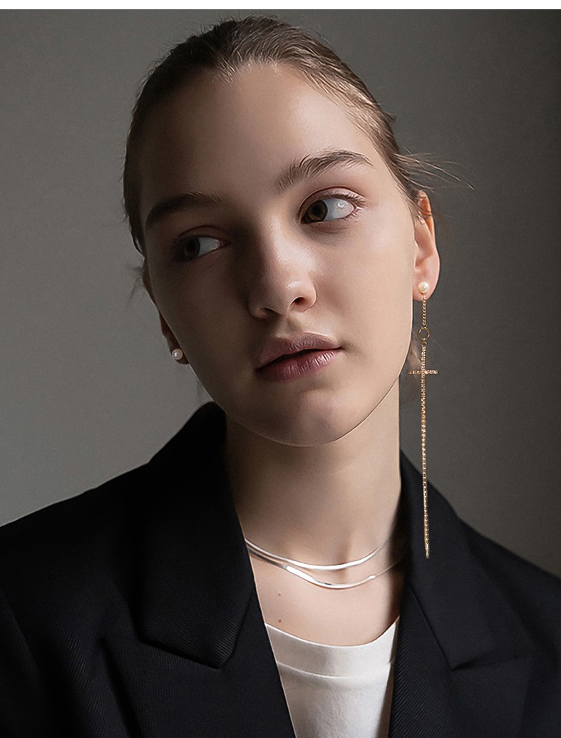 Drop design Cross and pearl detail Sterling silver back