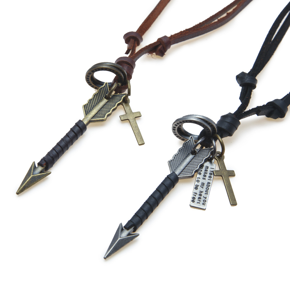 AXXOCORIA EXQUISITE CRAFTSMANSHIP RETRO ARROW LEATHER NECKLACE