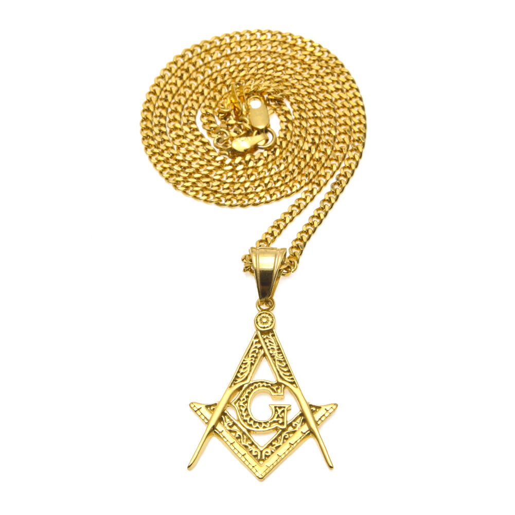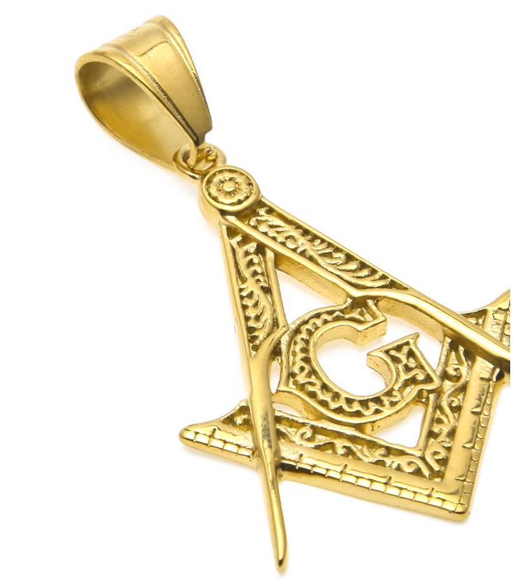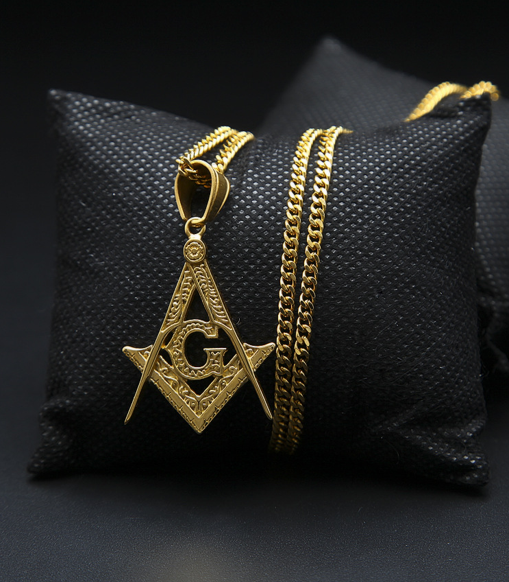AXXOCORIA FREE MASONRY STAINLESS STEEL HIP HOP NECKLACE IN GOLD