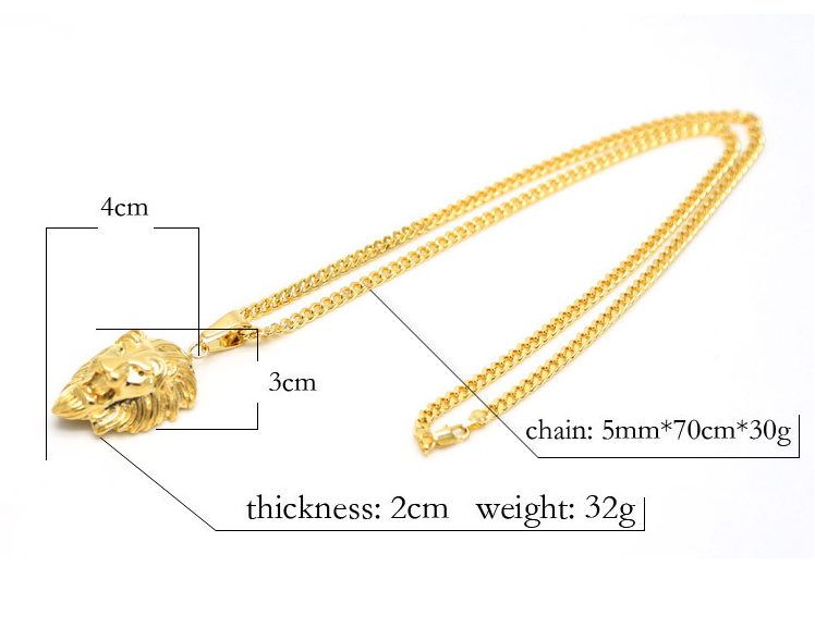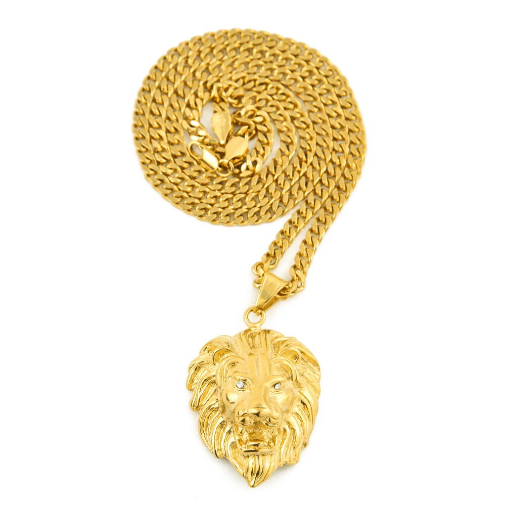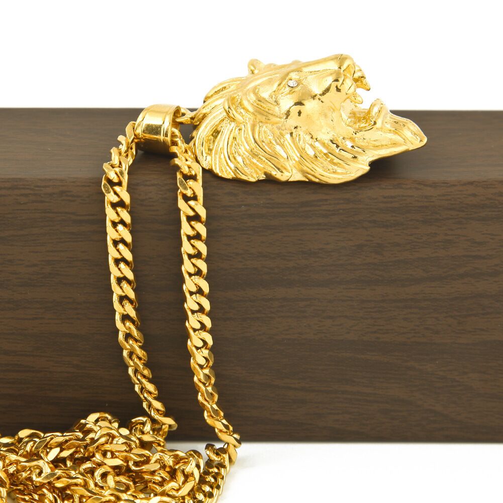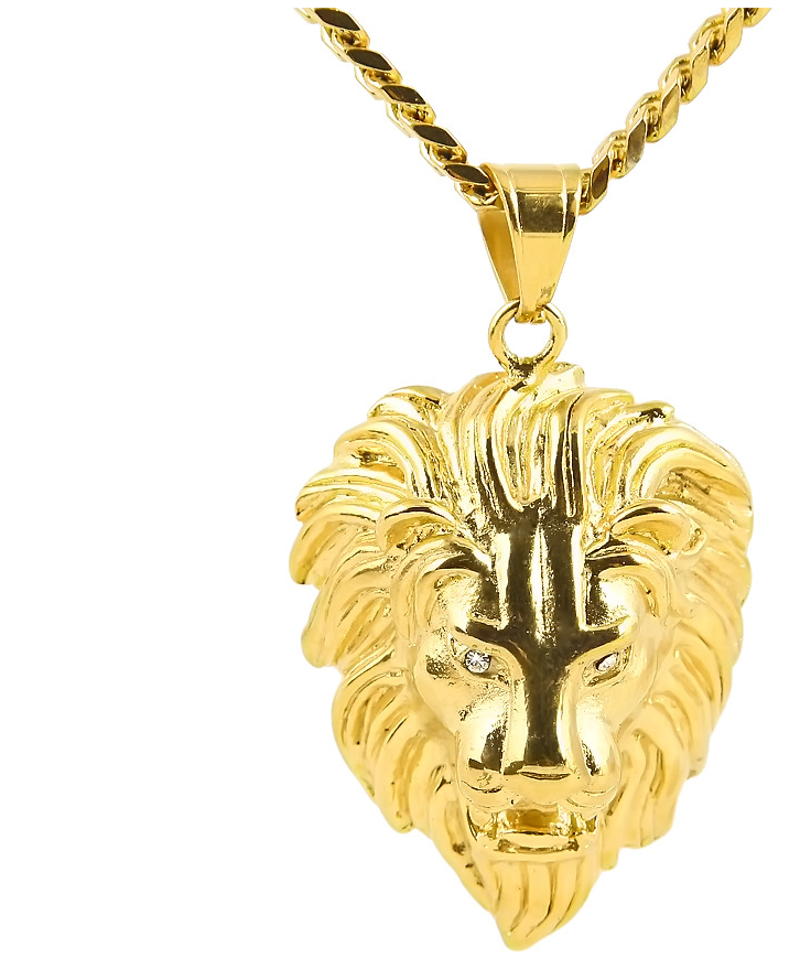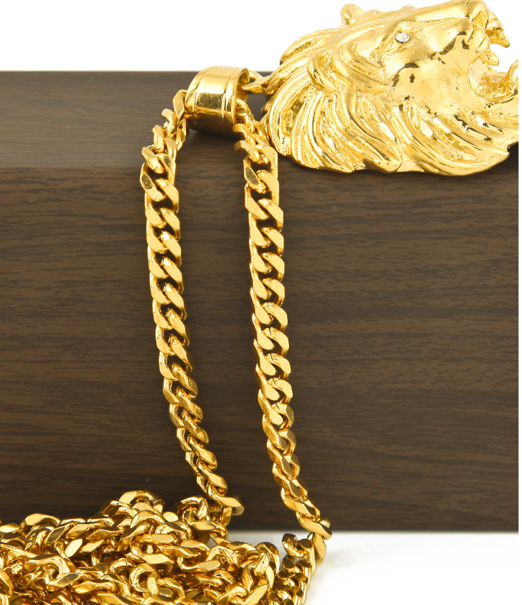 AXXOCORIA THREE DIMENSIONAL LION HEAD PENDANT WITH CUBAN CHAIN GOLD PLATED