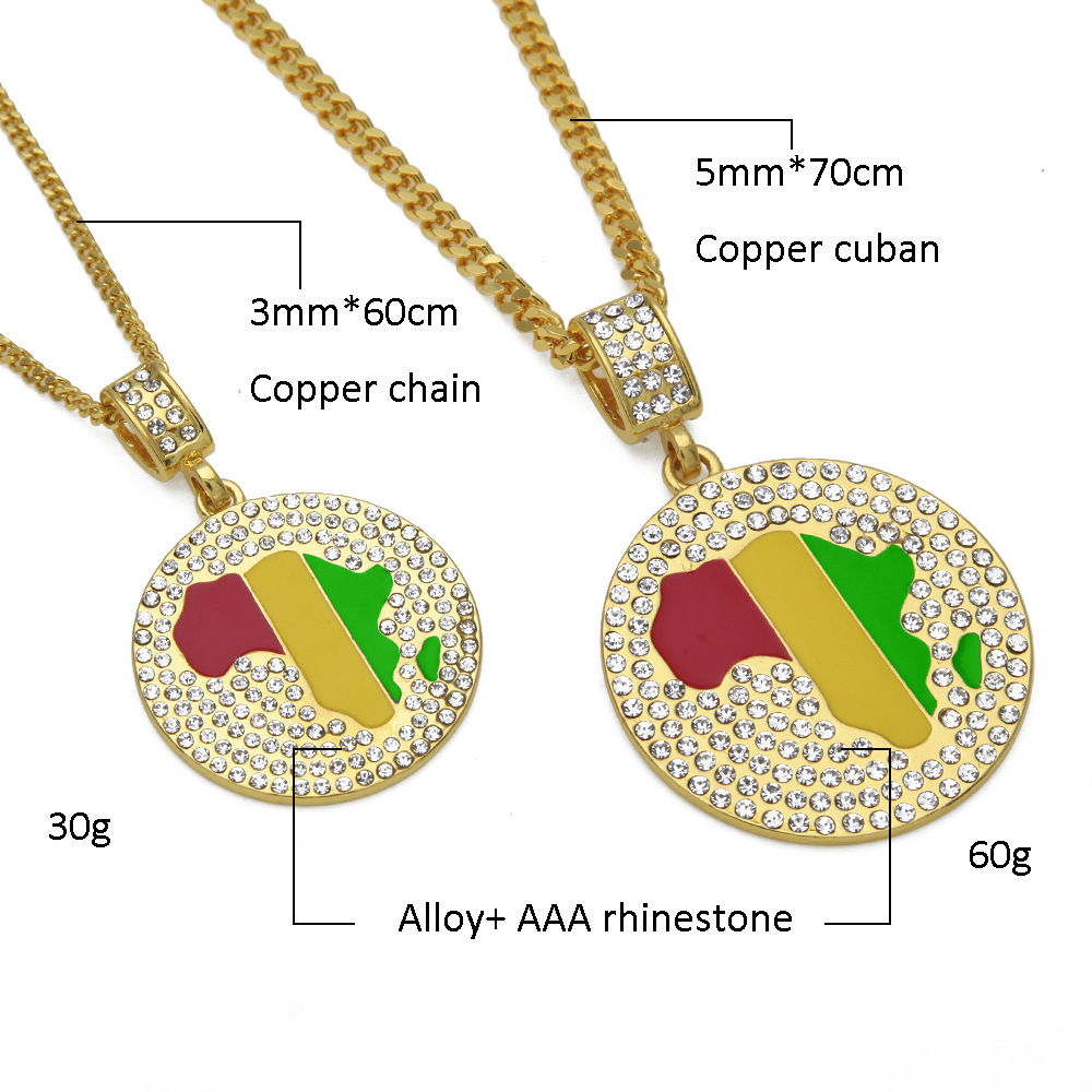 GANSPO AFRICA MAP COPPER CHAIN NECKLACE WITH RHINESTONE IN GOLD
